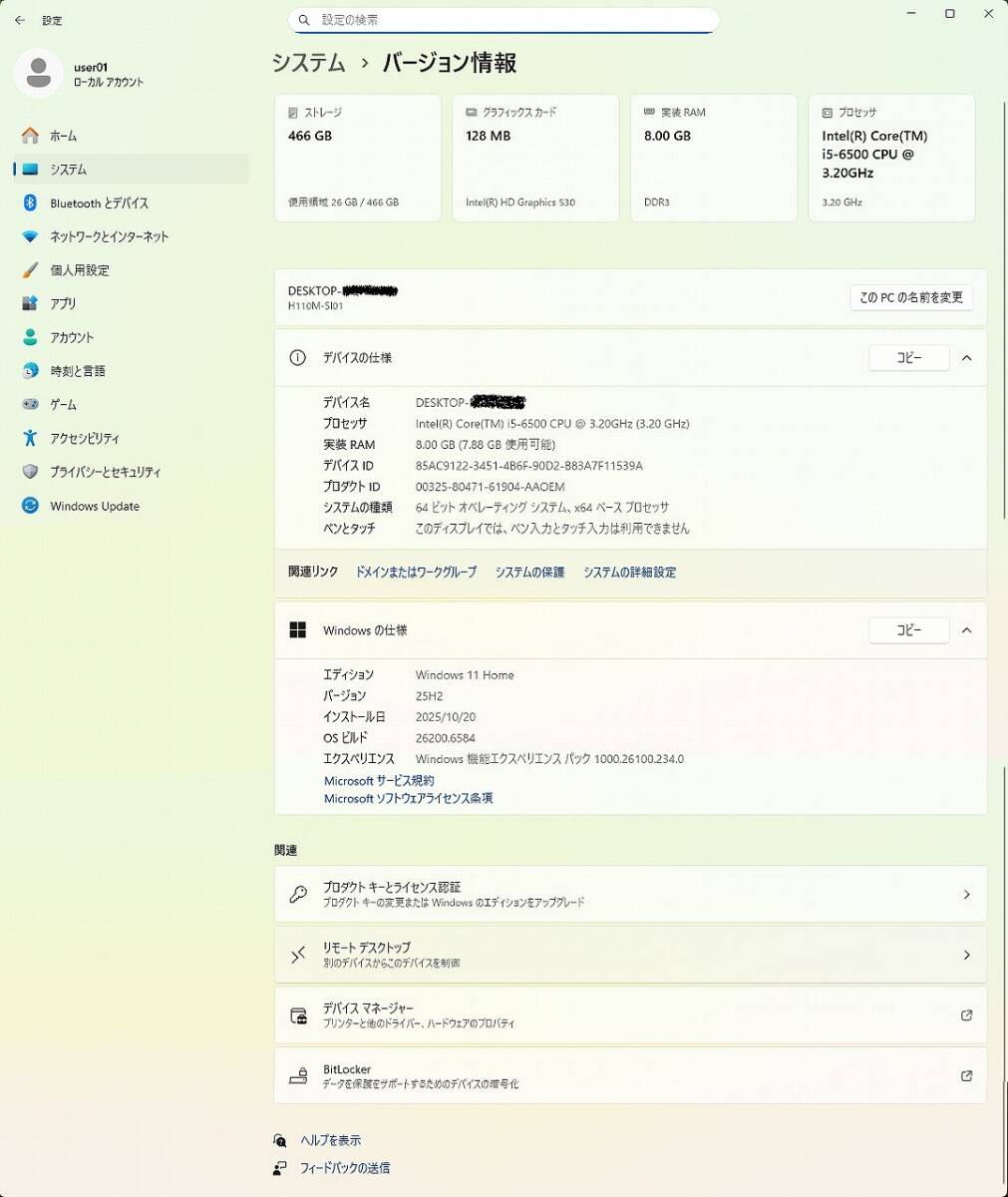 マウスコンピュータ LM-iHS300S-SH-KK Intel Core-i5 6500 メモリ8GB HDD500GB Windows11