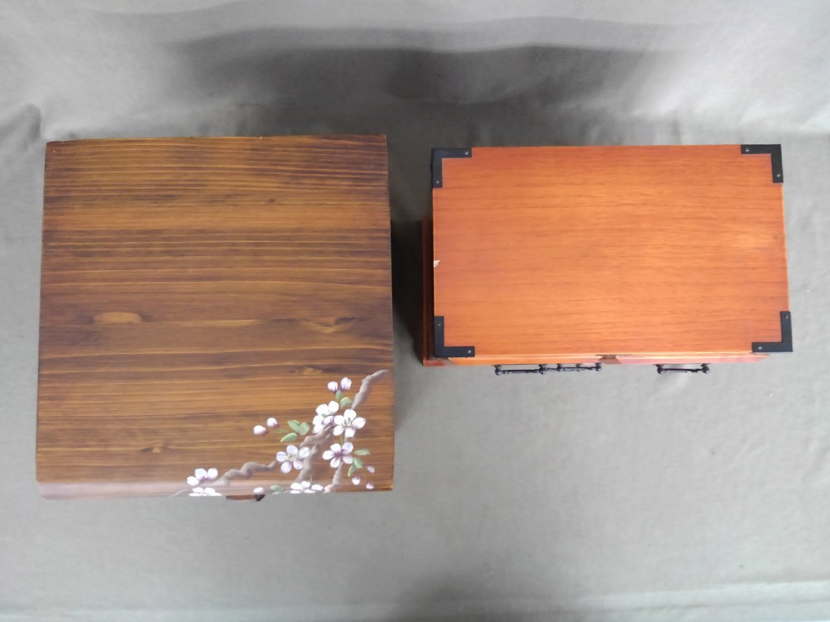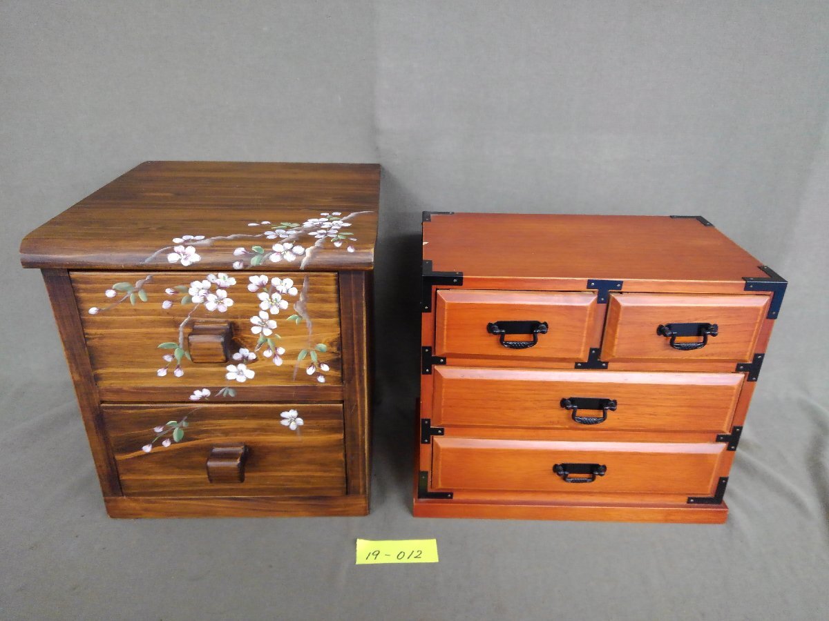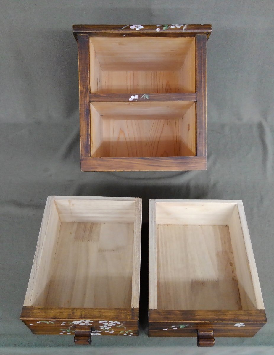 ●★19―012★木製家具 桜絵 2段引き出し/3段引き出し 2点まとめて/小物入れ アンティーク ウッド 箪笥 タンス チェスト 古民家[140]