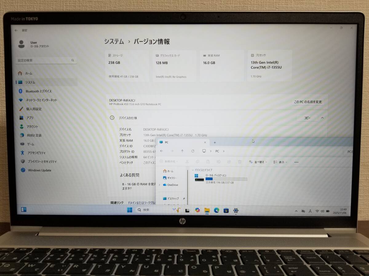 T08 超美品 HP ProBook 450 G10 Core i7 第13世代 (1355U)◆16GB◆NVMe SSD256GB◆15.6インチ Full HD Win11 Office 2021 ノートパソコン