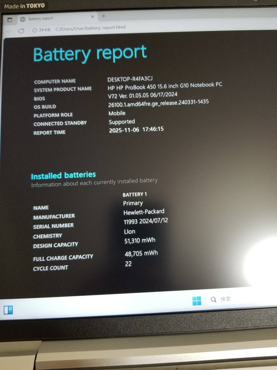 バッテリー:良好 (充電回数:22回)