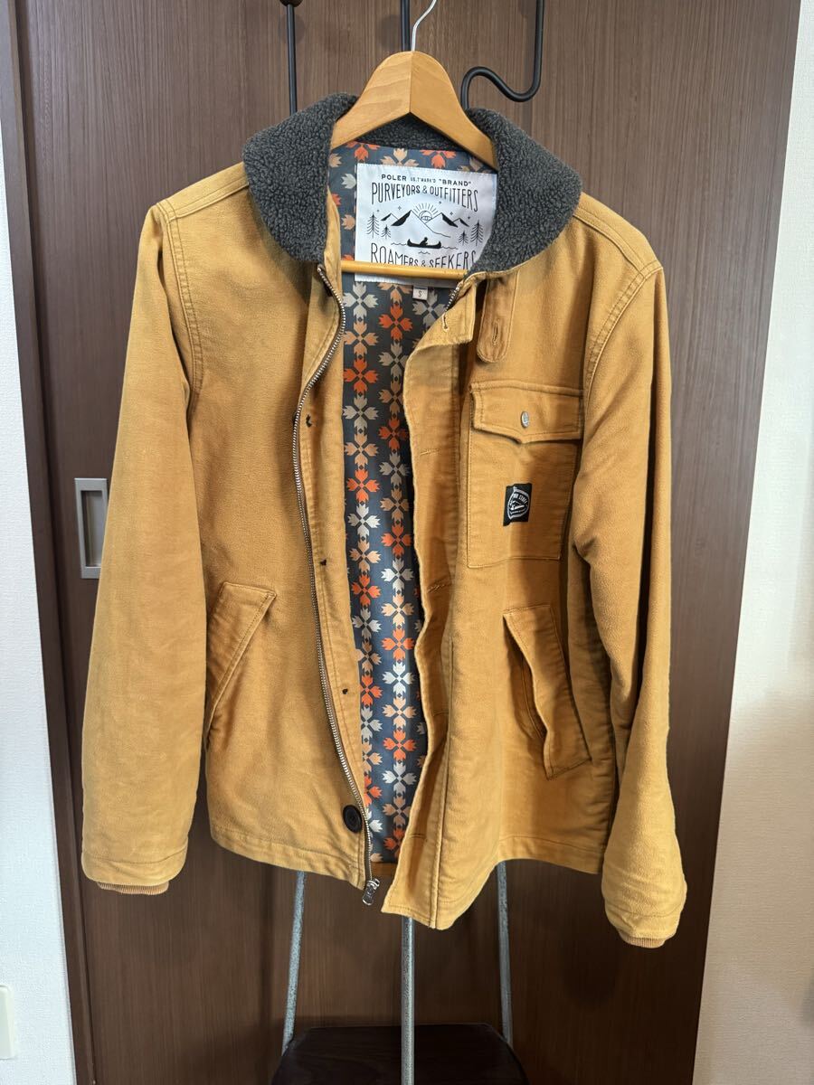 POLeRのキャメル色のフリース襟付きジャケット