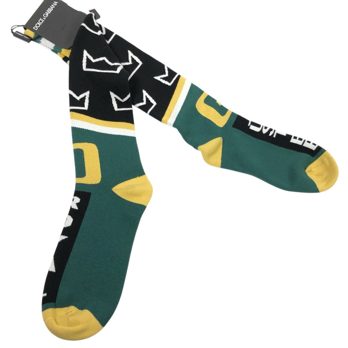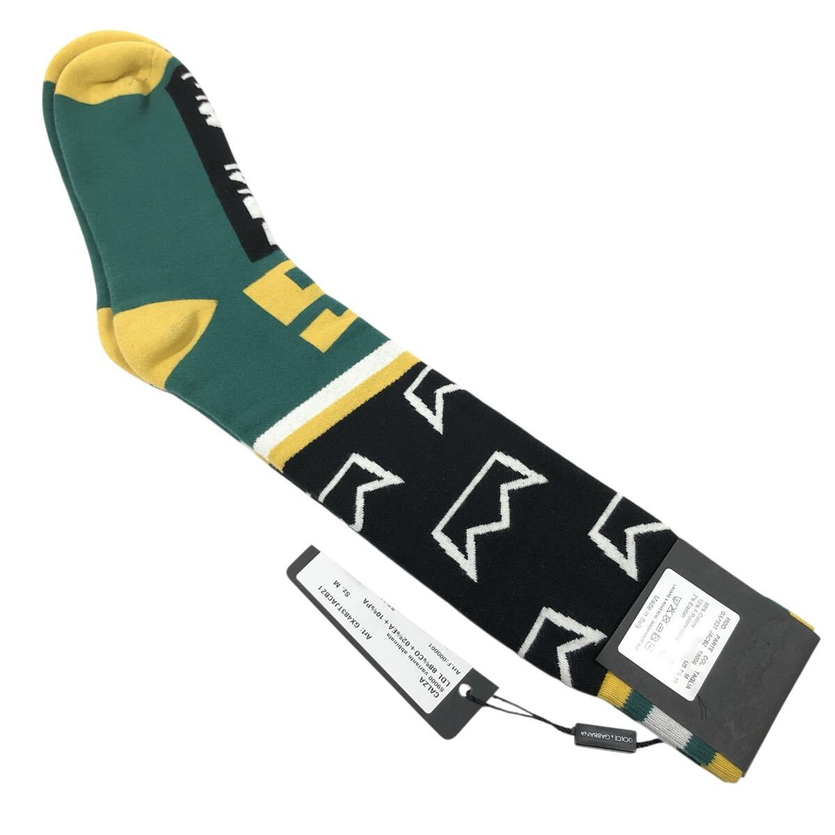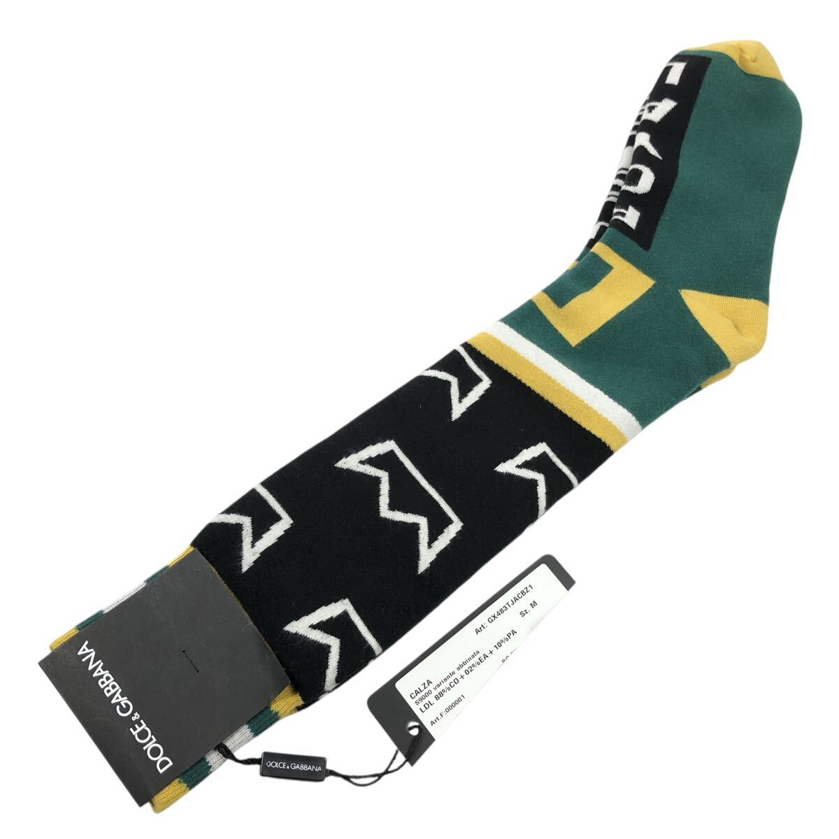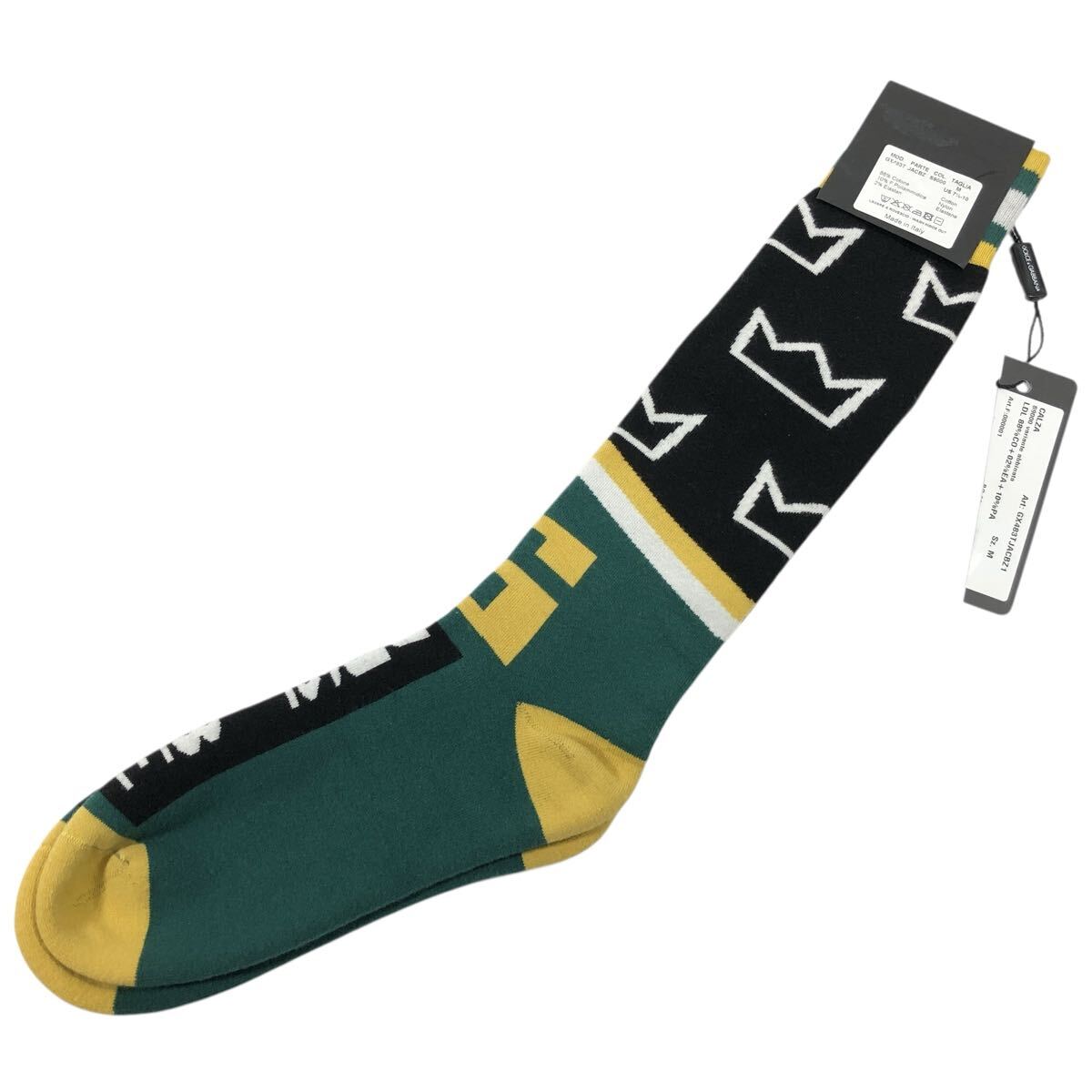 未使用品【ドルチェ&ガッバーナ】本物 DOLCE&GABBANA 靴下 サイズM ソックス 黒色系×緑色系 コットン メンズ レディース イタリア製