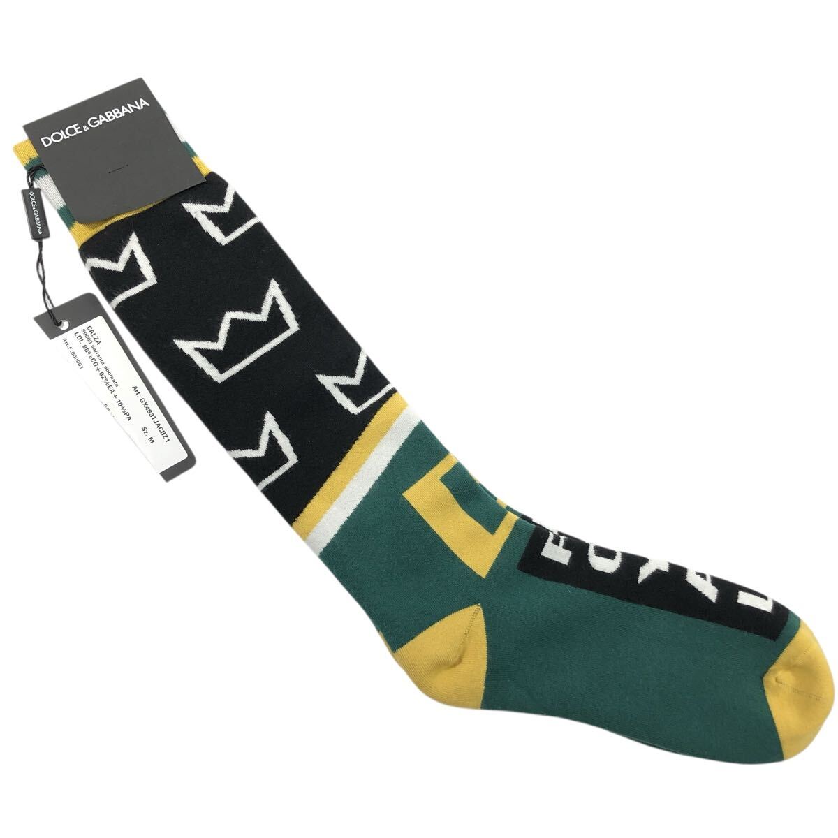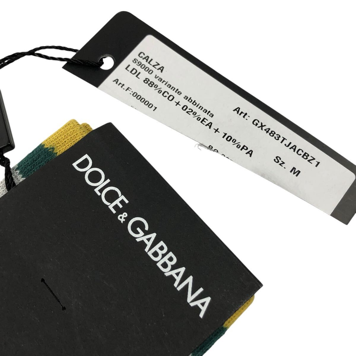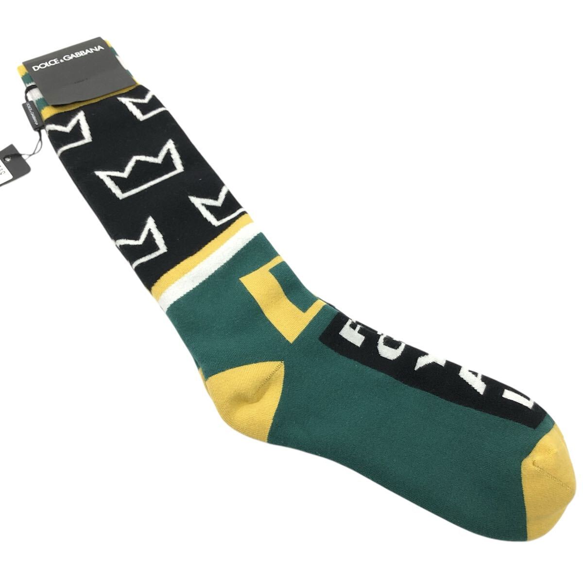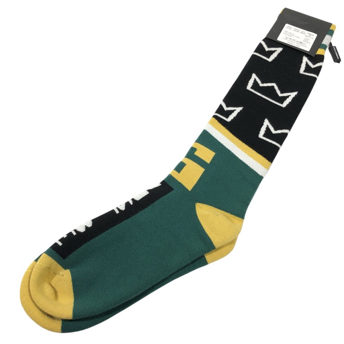 未使用品【ドルチェ&ガッバーナ】本物 DOLCE&GABBANA 靴下 サイズM ソックス 黒色系×緑色系 コットン メンズ レディース イタリア製