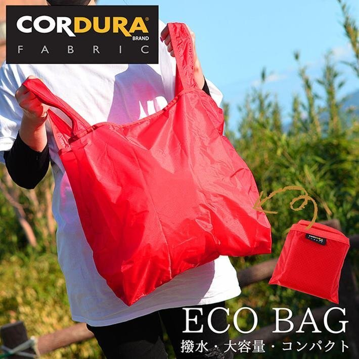 エコバッグ コーデュラ ショッピングバッグ 小さめ コンパクト コンビニ 丈夫 簡単 オシャレ 大容量 撥水 日本製 NKT-01 レッド 新品