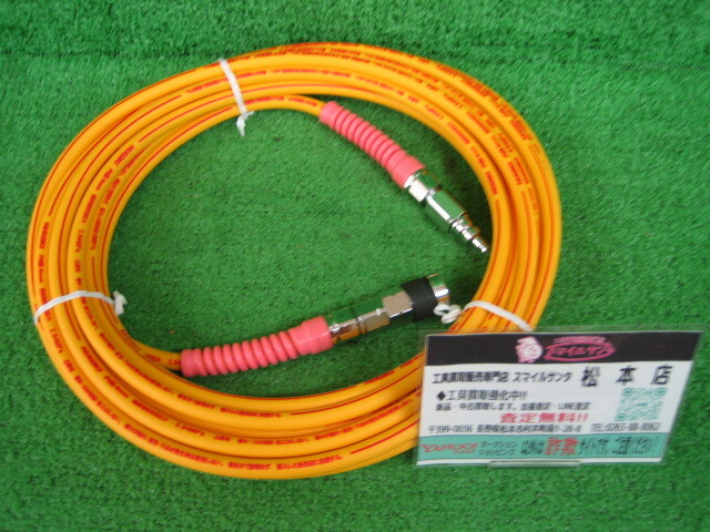 | 商品説明 | ●使用圧力…2.26MPa ●最高圧力…2.94MPa ●ホース材質…ウレタン ●ホース内径×外径…6mm×10mm ●全長…10m ●ワンタッチロックカプラ付 ●重量…950g ●用途…高圧釘打機用 ※中古品につき擦り傷見られます。(写真参考にて。) ※【詐欺サイトにご注意ください】 日頃より当店をご利用いただき、誠にありがとうございます。 この度、当社の出品商品が、当社とは関係のない詐欺サイト上で掲載されていることを確認いたしました。当社の正規販売はYahoo!ショッピングおよびYahoo!オークションのみであり、これら以外のサイトとは一切関係がございません。 【お客様への重要なお願いとご注意】 詐欺サイトでのご購入は、個人情報や金銭の被害に繋がる恐れがあります。 不審なサイトには絶対にアクセスせず、個人情報の入力やご注文はお控えください。 被害に遭われた際は、最寄りの警察署または消費者センターにご相談ください。 万が一被害に遭われてしまった場合、誠に申し訳ございませんが、当社では被害に関する対応はいたしかねますので予めご了承ください。 お客様にはご心配をおかけいたしますが、ご理解ご協力のほどお願い申し上げます。 【ゆうパック 全国800円 (沖縄:1400円)】 【ヤマト運輸 全国1100円 (沖縄:1600円)】 どちらか一方を落札後、ご選択頂きます。 | 出品店舗 | スマイルサンタ 松本店 |