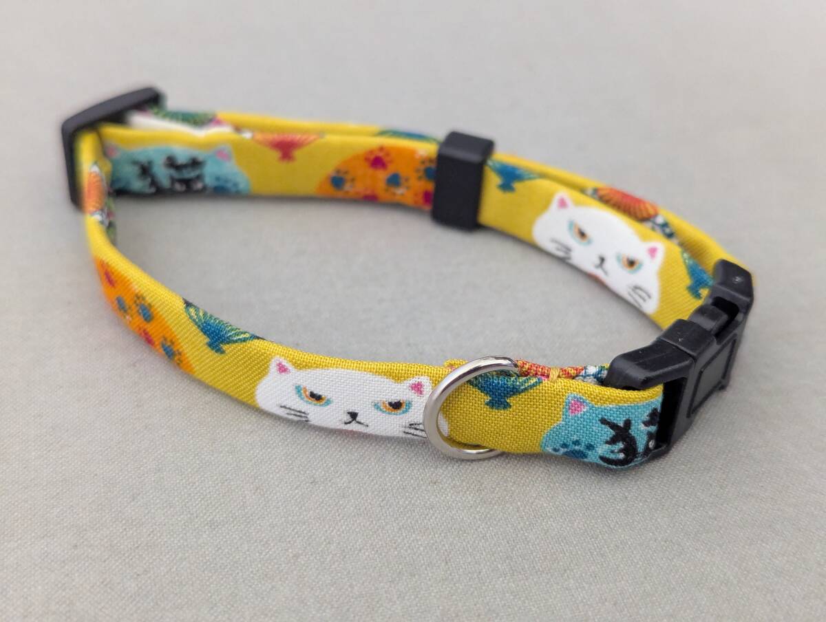 ★手作り京都作家物 猫 首輪 和柄★ヒワ色地扇面ニャンコ柄★ハンドメイド (セーフティタイプ) 即決700円