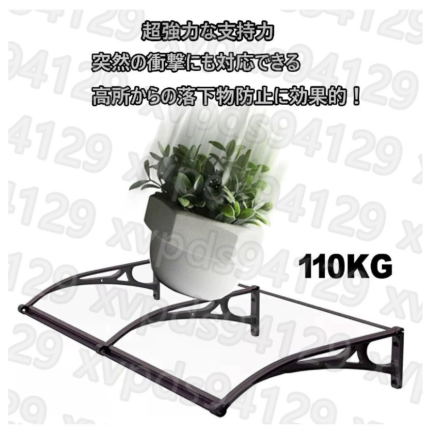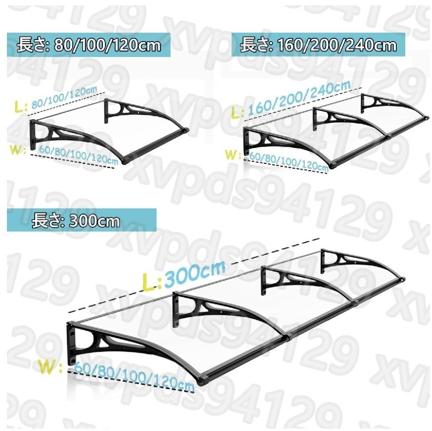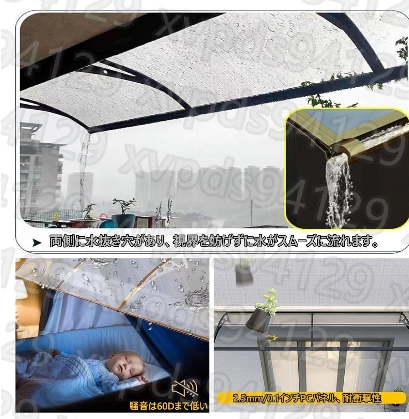 テラス屋根 庇 透明な ひさし 屋根庇 ひさし 雨よけ ポリカーボネートキャノピー 日よけ 防水能力 屋外用 雨どい庇 窓 玄関用 80*180cm