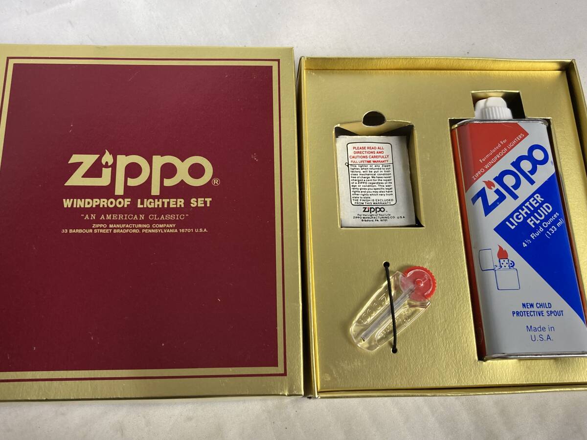 | ●商品名 1993年製 ZIPPO WINDPROOF LIGHTER SET AN AMERICAN CLASSIC 未使用 デッドストック です。 ●付属品 箱、ギャランティ、オイル、フリント(経年劣化があります) ●状態 未使用 新品です。 Zippoは開封していません。 自宅保管品で経年の傷みなどあります。状態が極端に気になる方はご入札をご遠慮下さい。 |