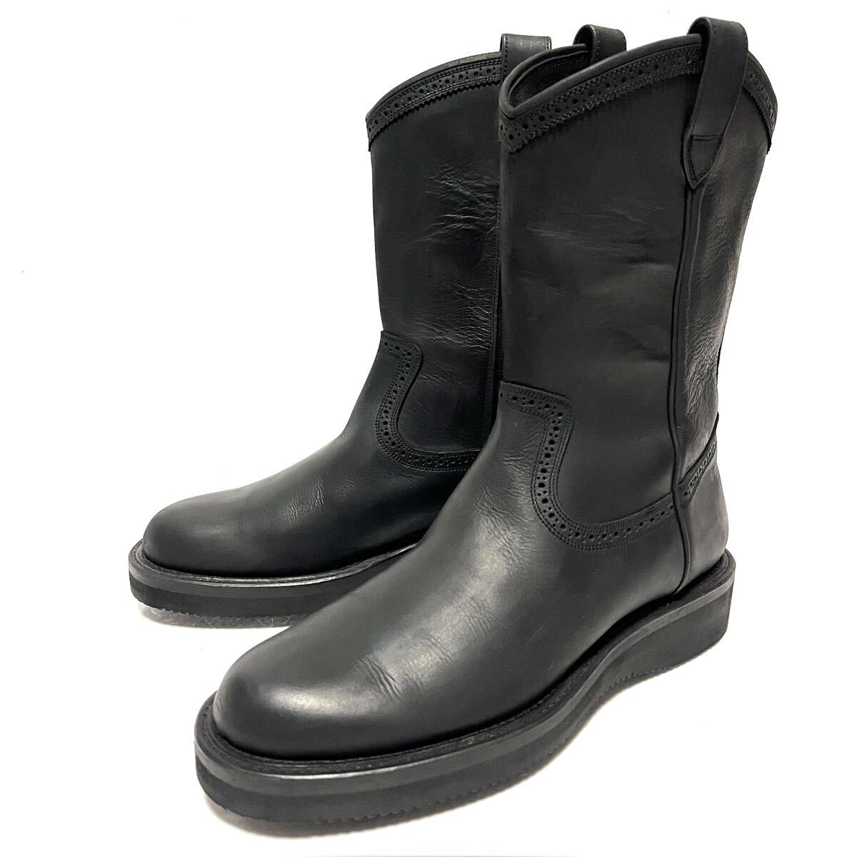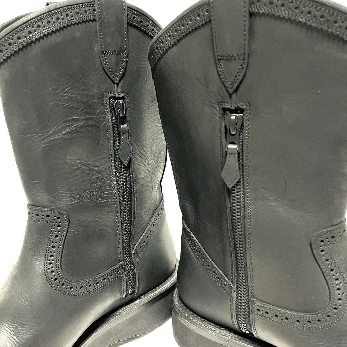 ★極美品★FOOT THE COACHER フットザコーチャー★ウエスタンブーツ★8(26.5cm)★黒 ブラック★サイドジップ ジッパー付き★ペコス★メンズ レザーシューズ 革靴★