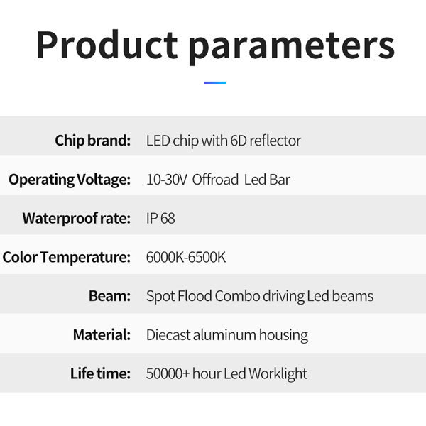 ....優れた機能:なぜ私たちのより良いアップグレードLEDライトバーを選ぶのですか?1、IP68防水、防塵、防振、品質の問題を心配することなく、どんな過酷な環境でもライトを使用できます。2、より良い視界-より長い照射距離とより広い視野を提供し、ドライバーの安全を確保します。3、より良い熱放散-特別に設計されたダイカストアルミニウム合金ヒートシンクは、作業灯の寿命を50000時間以上に効果的に延長します。