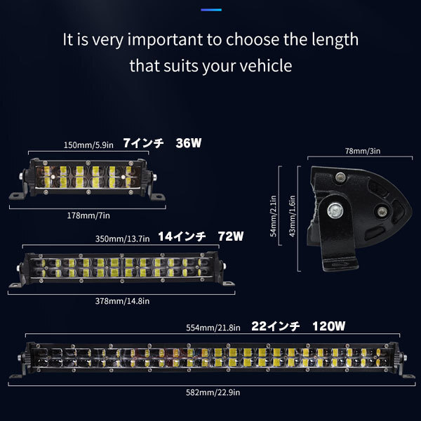 ....幅広い設備:DC10V-30V動作電圧範囲:当社の単列LEDライトバーは、さまざまなタイプのトラック、オフロード車、SUV、ATV、自動車、鉱業、軍事、ボート、農業、屋内、屋外、重機と幅広く互換性があります設備等。