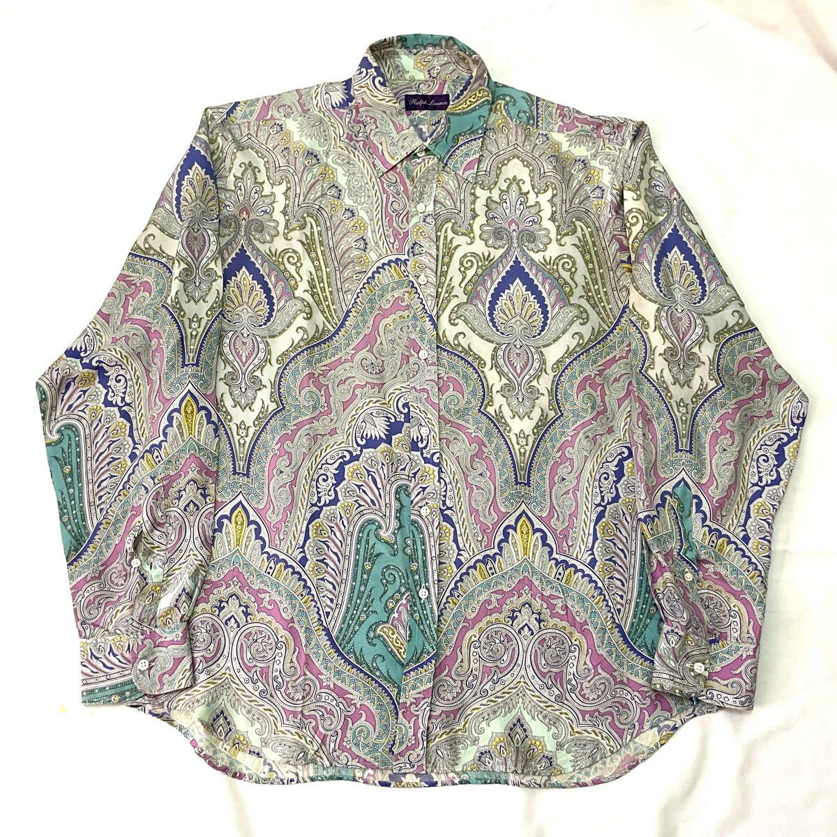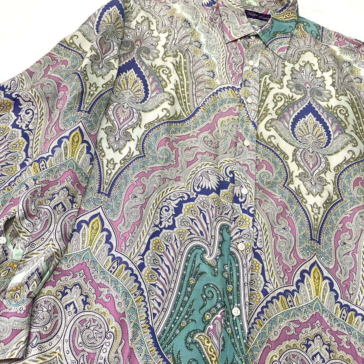 Ralph Lauren シルク シャツ ペイズリー ビンテージ 90s 長袖シャツ 総柄 イタリア製 ラルフローレン vintage pure silk L