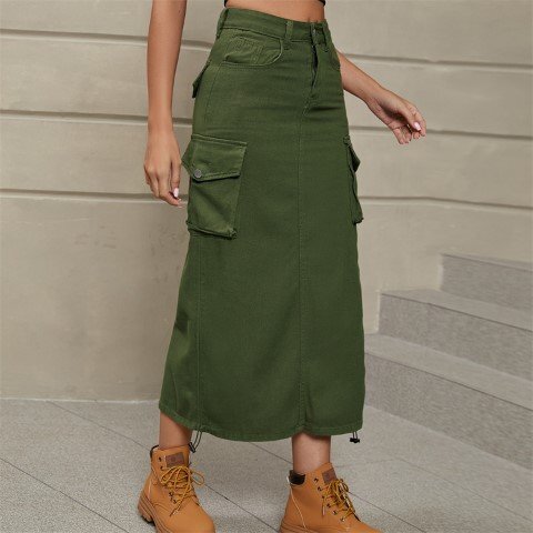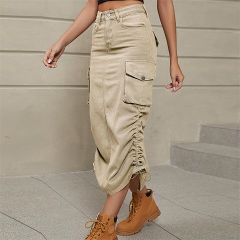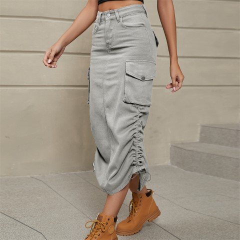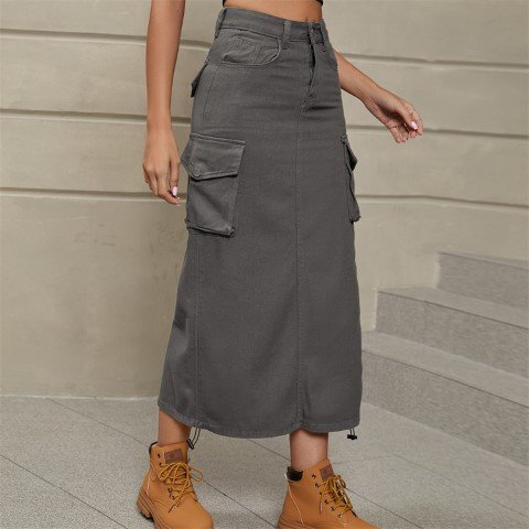 ロングスカート ミディアムスカート 欧米風 カジュアル ワークハーフ ユニーク レディース M ライトグレー