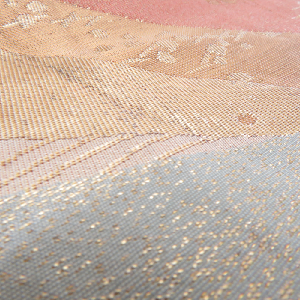 | 袋帯 正絹 金糸 色紙文様 ベージュ色x金色x多色 パステル系 六通柄 フォーマル 礼装 長さ430cm |