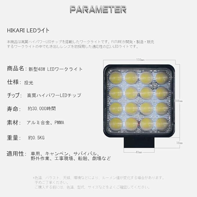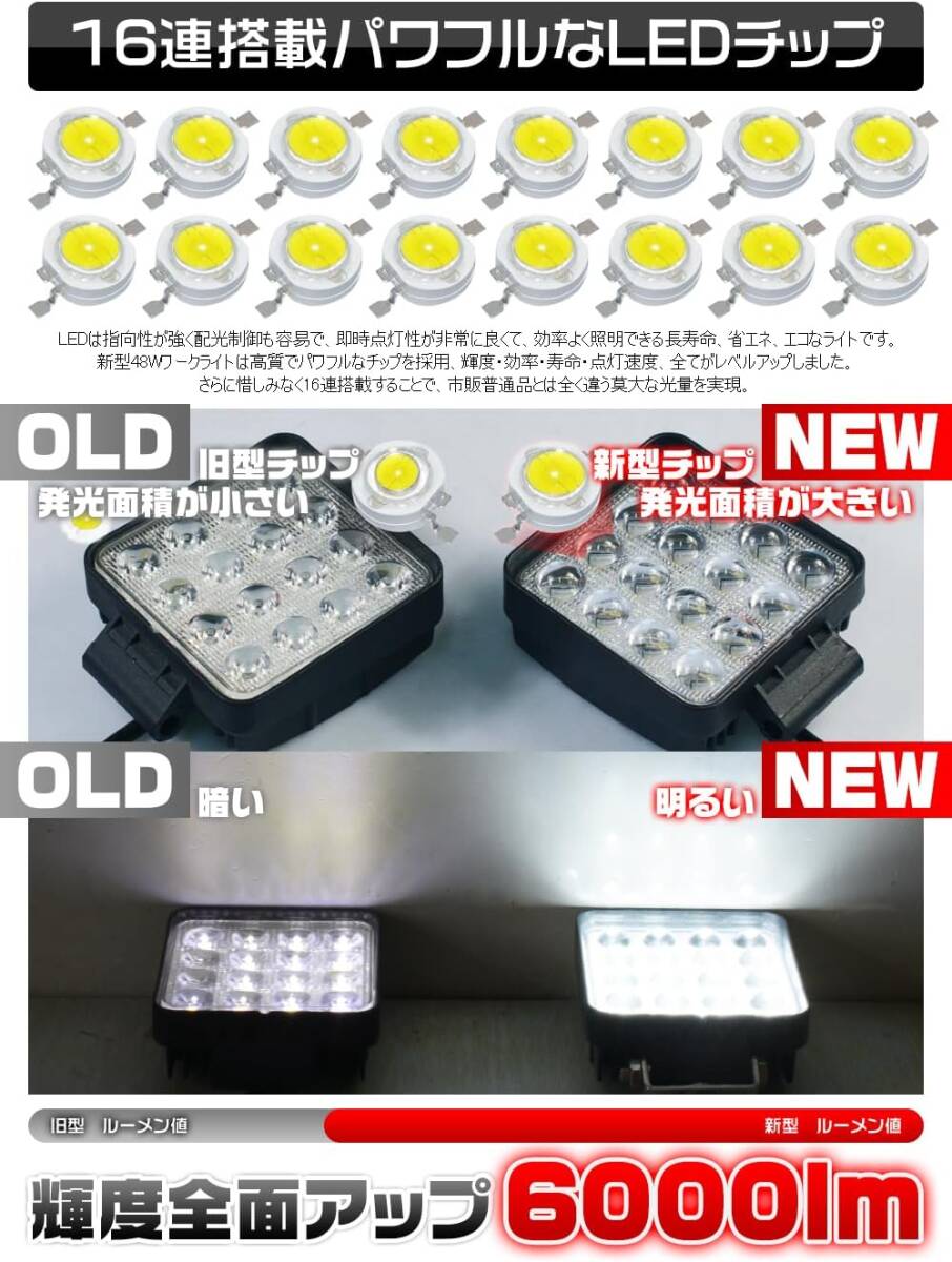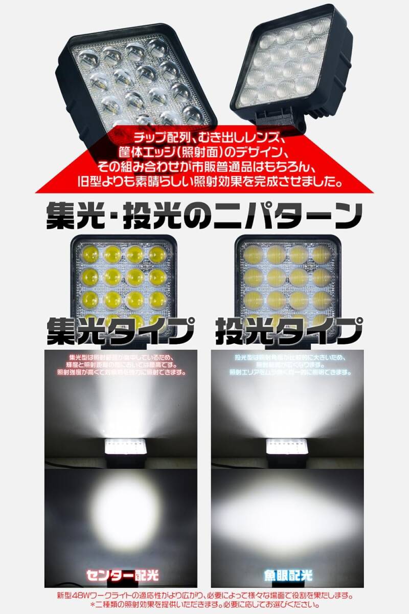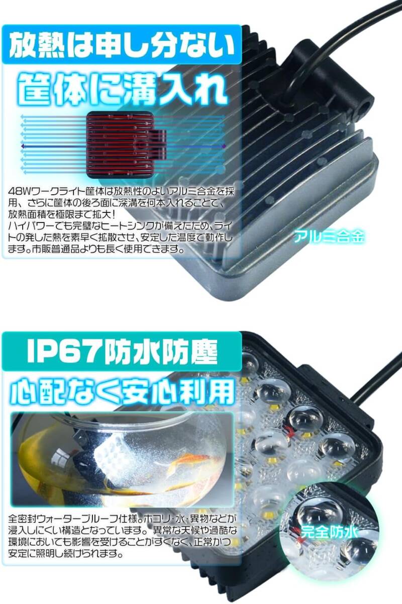 48W LED作業灯 超高輝度 6000lm 広角拡散タイプ IP67防水 8V-60V対応 PMMAレンズ トラック/ 8個セット 「A-ZG02-Bx8」