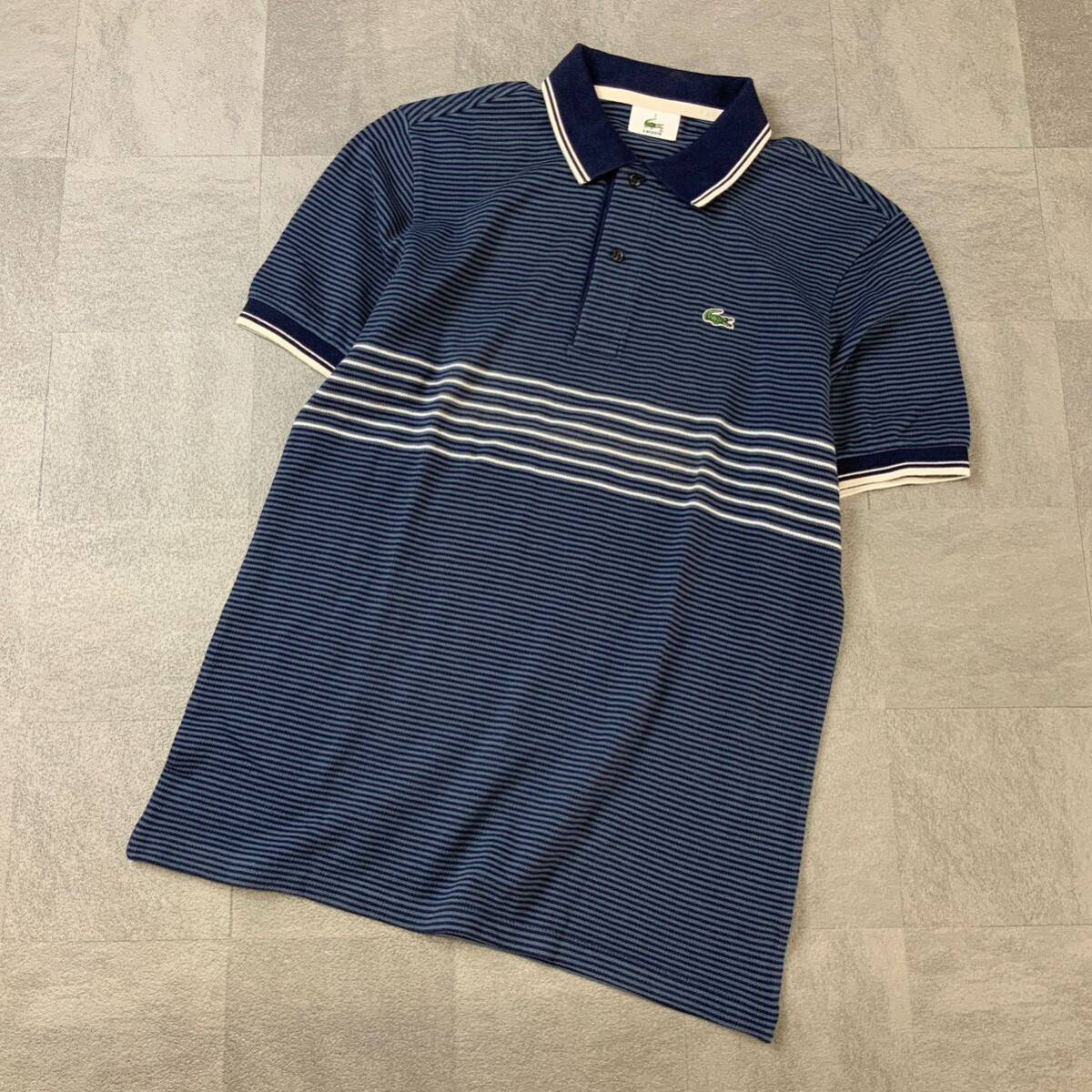 LACOSTE ラコステ ボーダー 鹿子 半袖ポロシャツ メンズ サイズ3 Sサイズ ネイビー ゴルフ