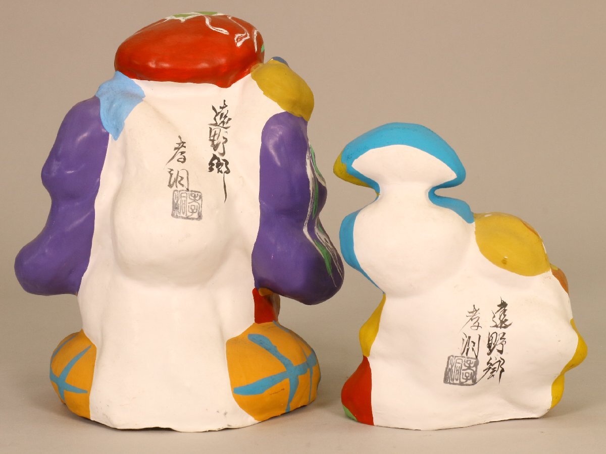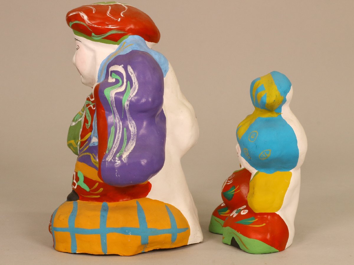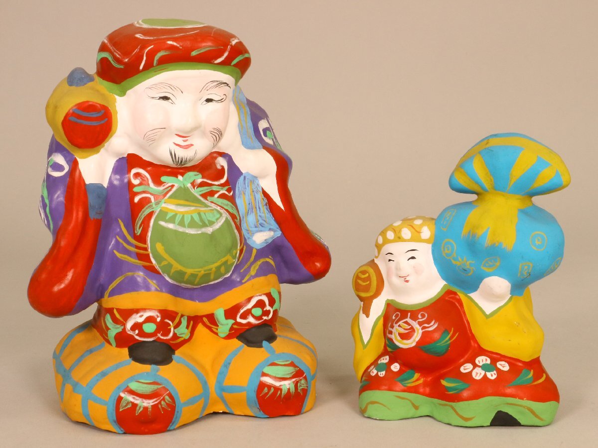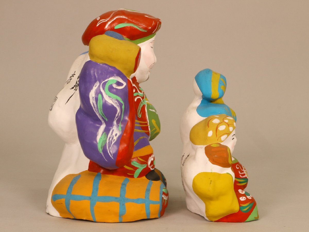 品名】 附馬牛人形 大黒 2点 孝洞 郷土玩具 岩手県 民芸 伝統工芸 風俗人形 置物 【状態】 経年による多少のスレやヨゴレ、イタミがございます。 時代や産地、作者の記載がある商品に関しては当店での判断によるものですので、保証はいたしかねます。あくまで参考程度とお考えいただ き、画像による判断をお願い致します。 上記を含む商品の状態や詳細(材質等)を写真にてご確認いただき、納得された上での入札をお待ちしております。 【大きさ】 大 幅:約14.5cm 奥行:約10.5cm 高さ:約17cm (採寸につきましては多少の誤差があるかと思いますので、予めご了承ください。) |