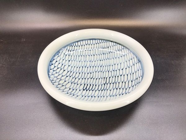 サ/ 砥部焼 玉縁鉢 玉ぶち鉢 網目 大皿 盛皿 31㎝ 在銘 /HY-1144