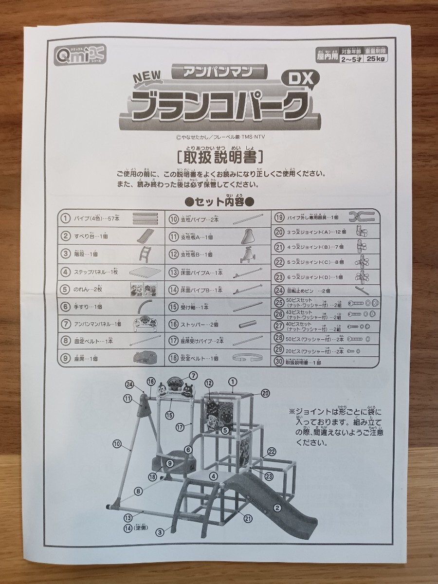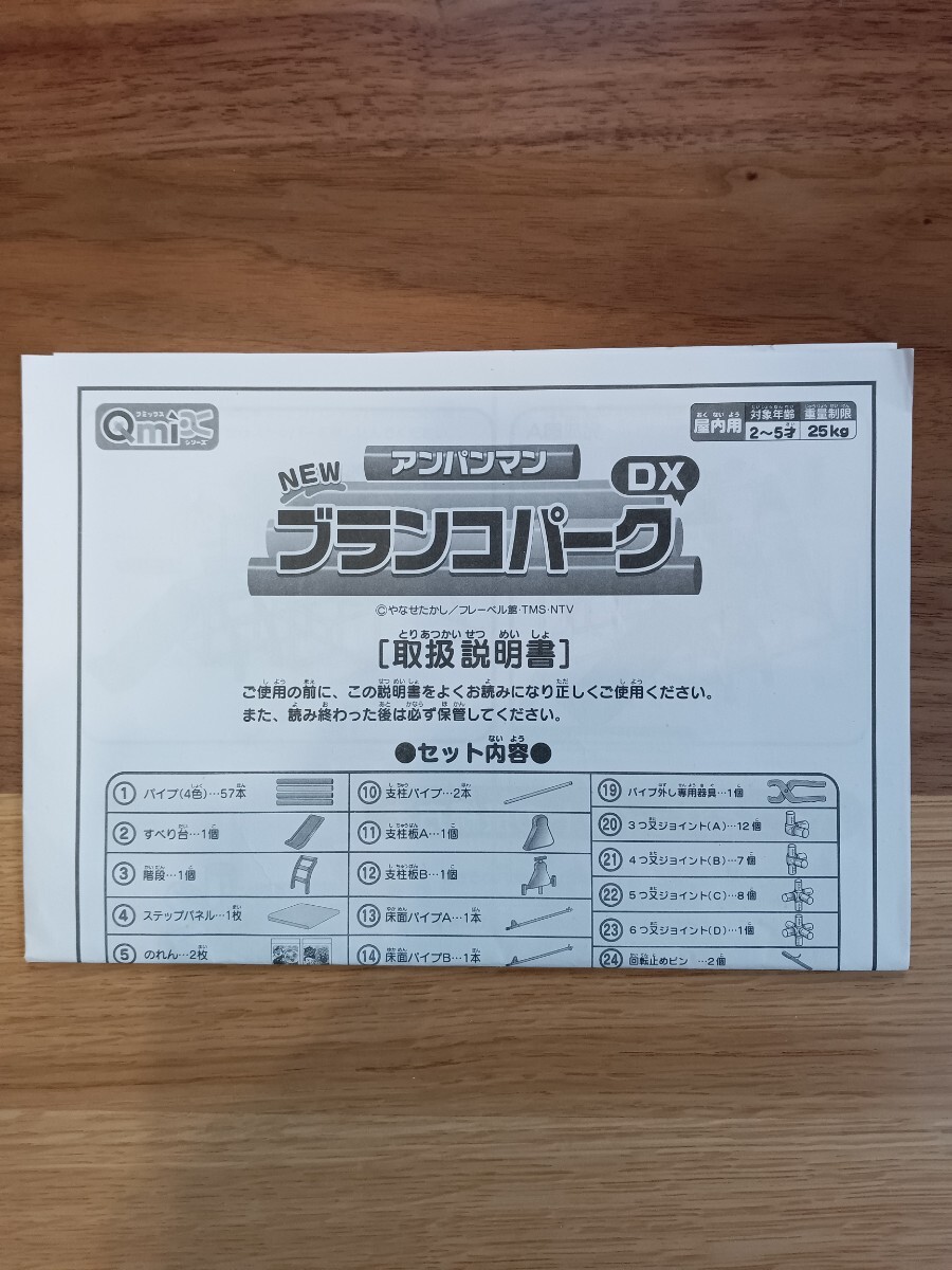 アンパンマン NEWブランコパークDX すべり台 ジャングルジム ブランコ 鉄棒 取扱説明書のみ【中古】【送料110円】