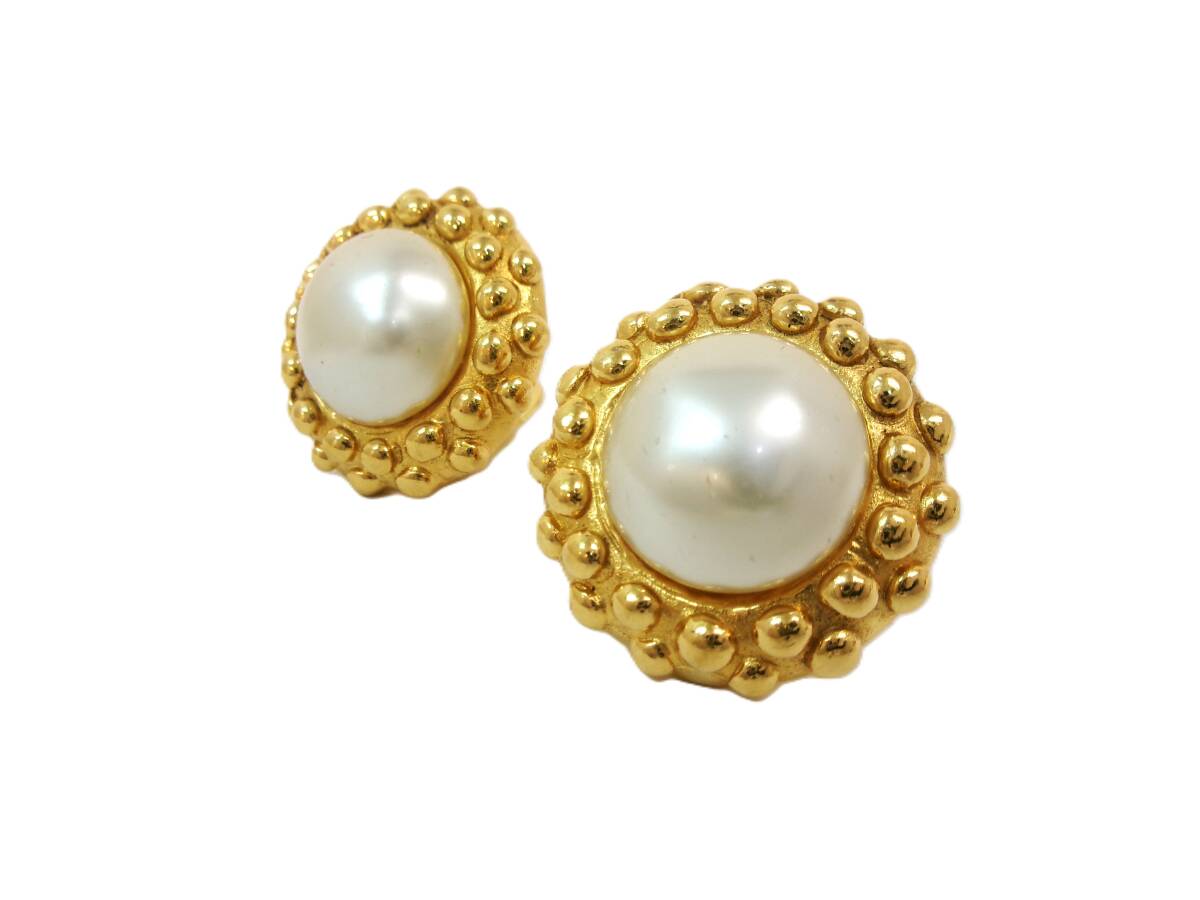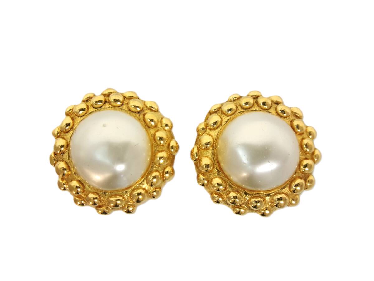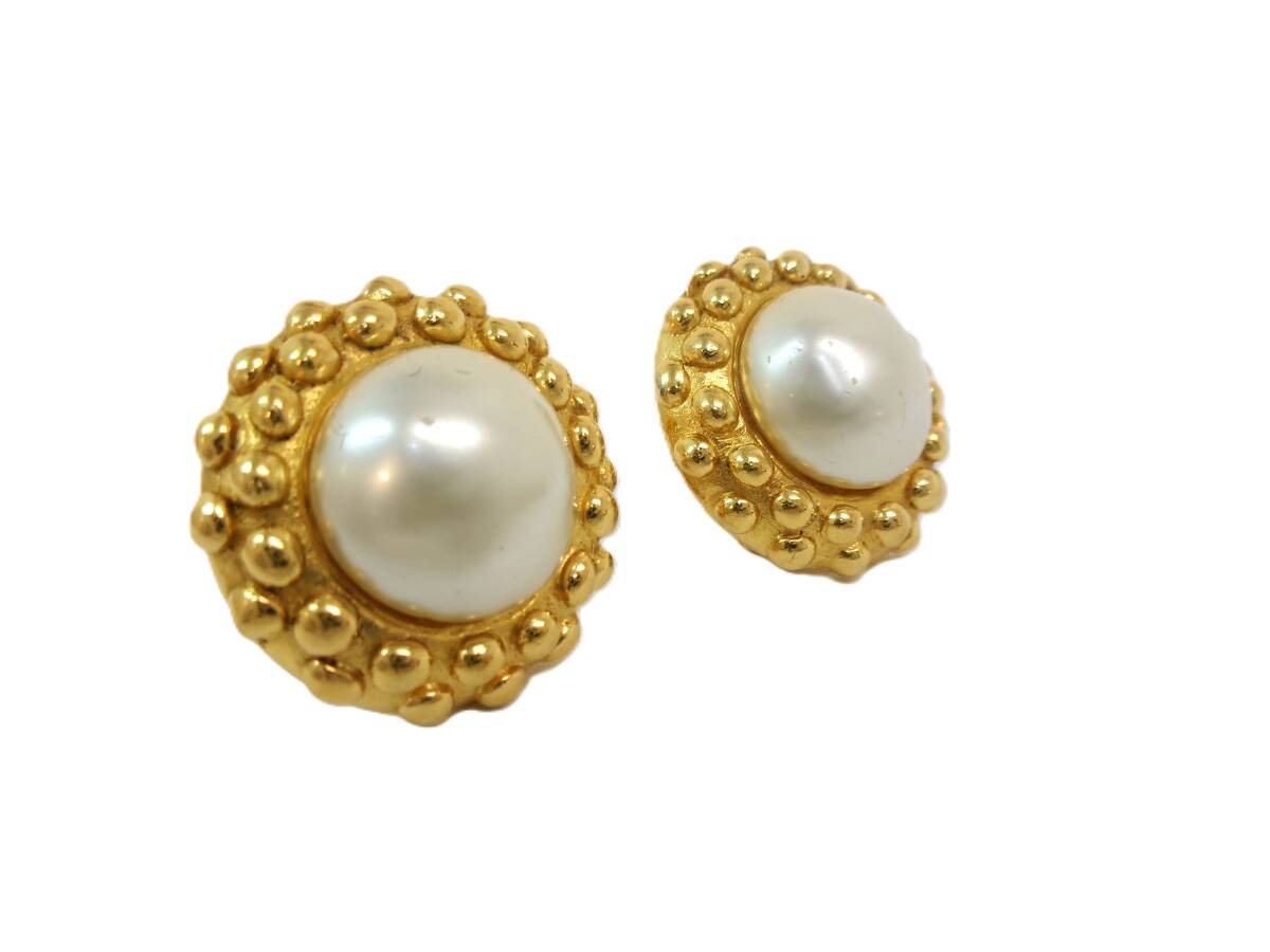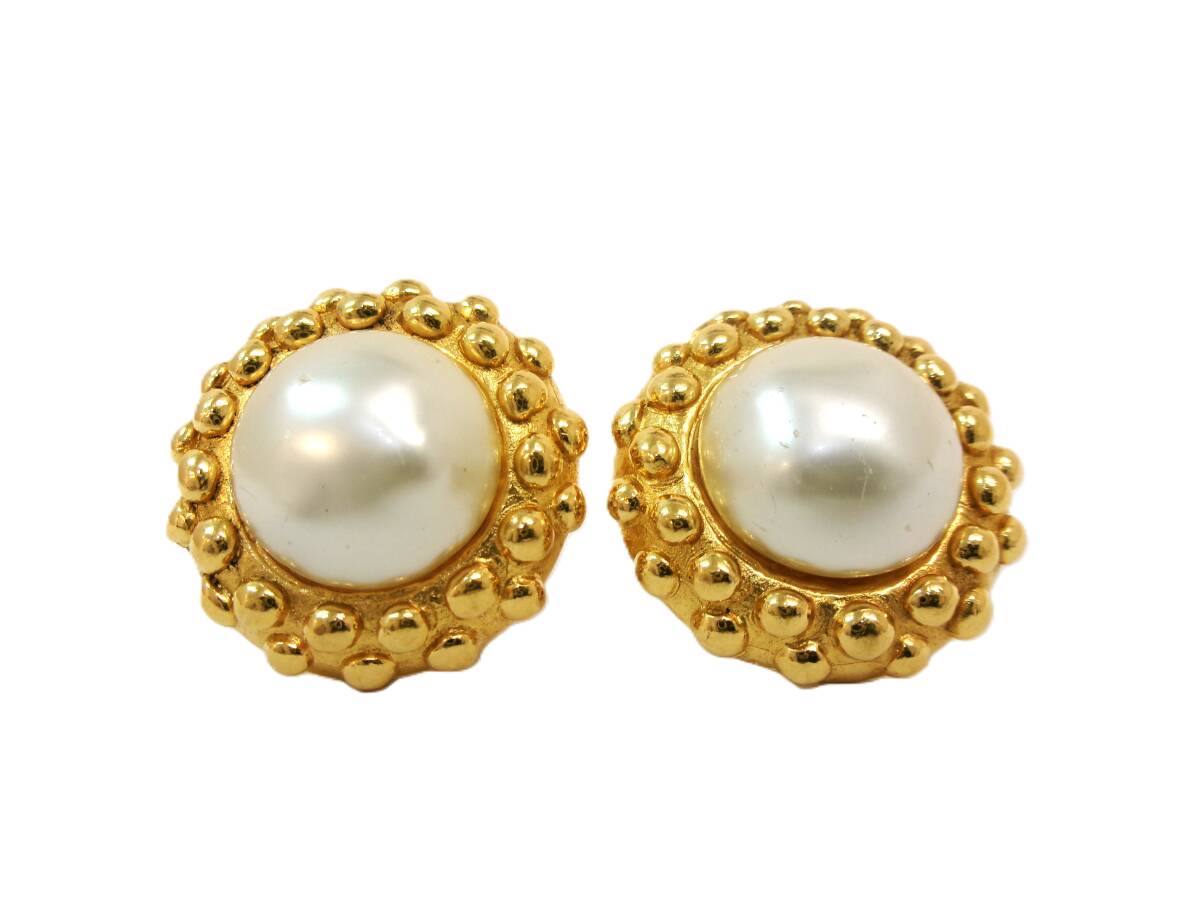 本物税込シャネル フェイクパール ヴィンテージイヤリング【CHANEL】