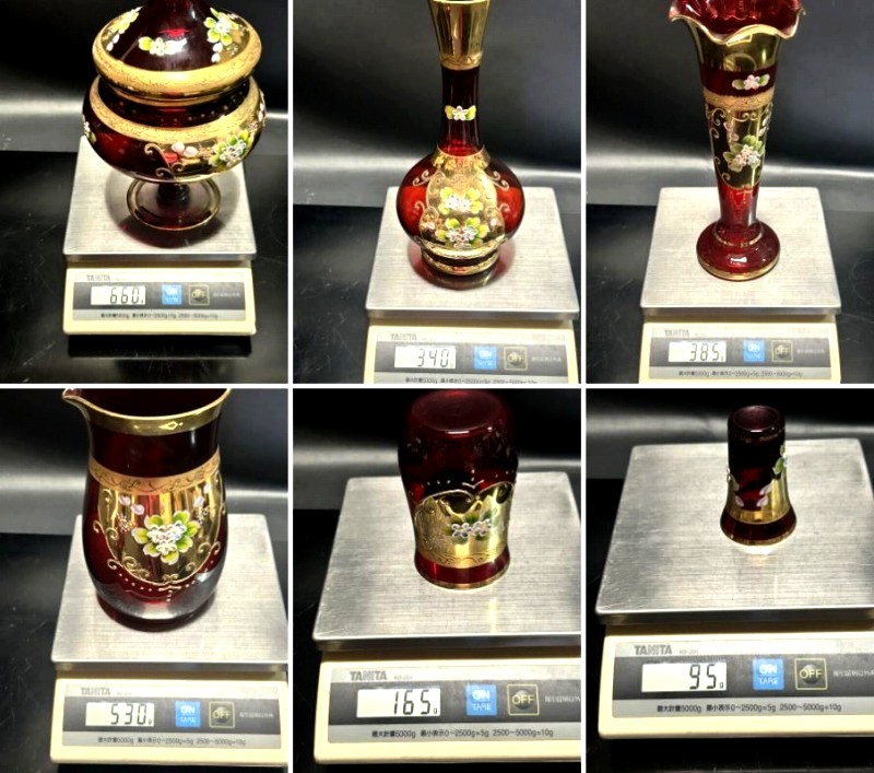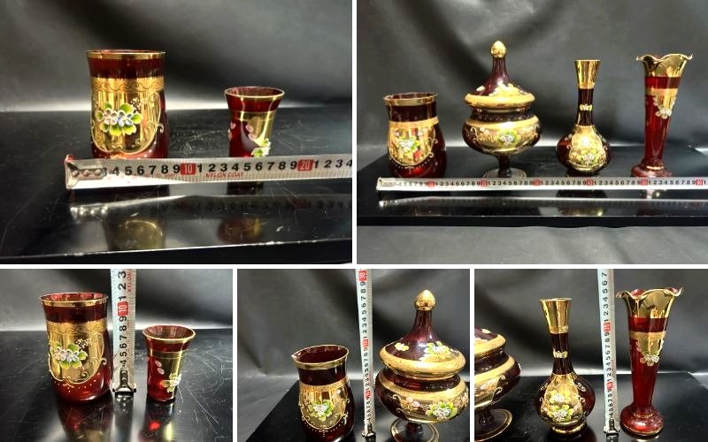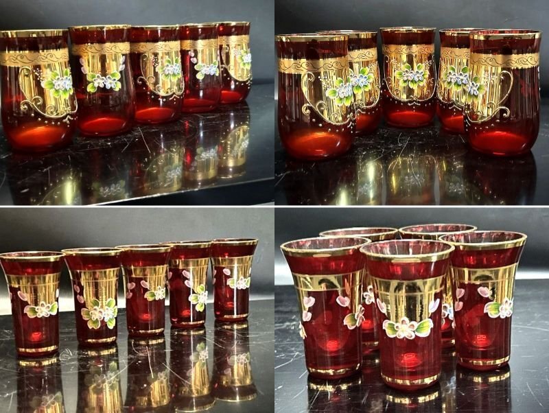 ◇赤と金彩の饗宴【VICTORIAN GLASS SEYEI/ヴィクトリアン・グラス(日本老舗メーカー 瀬栄陶器)16組】ヴィンテージ Q09203
