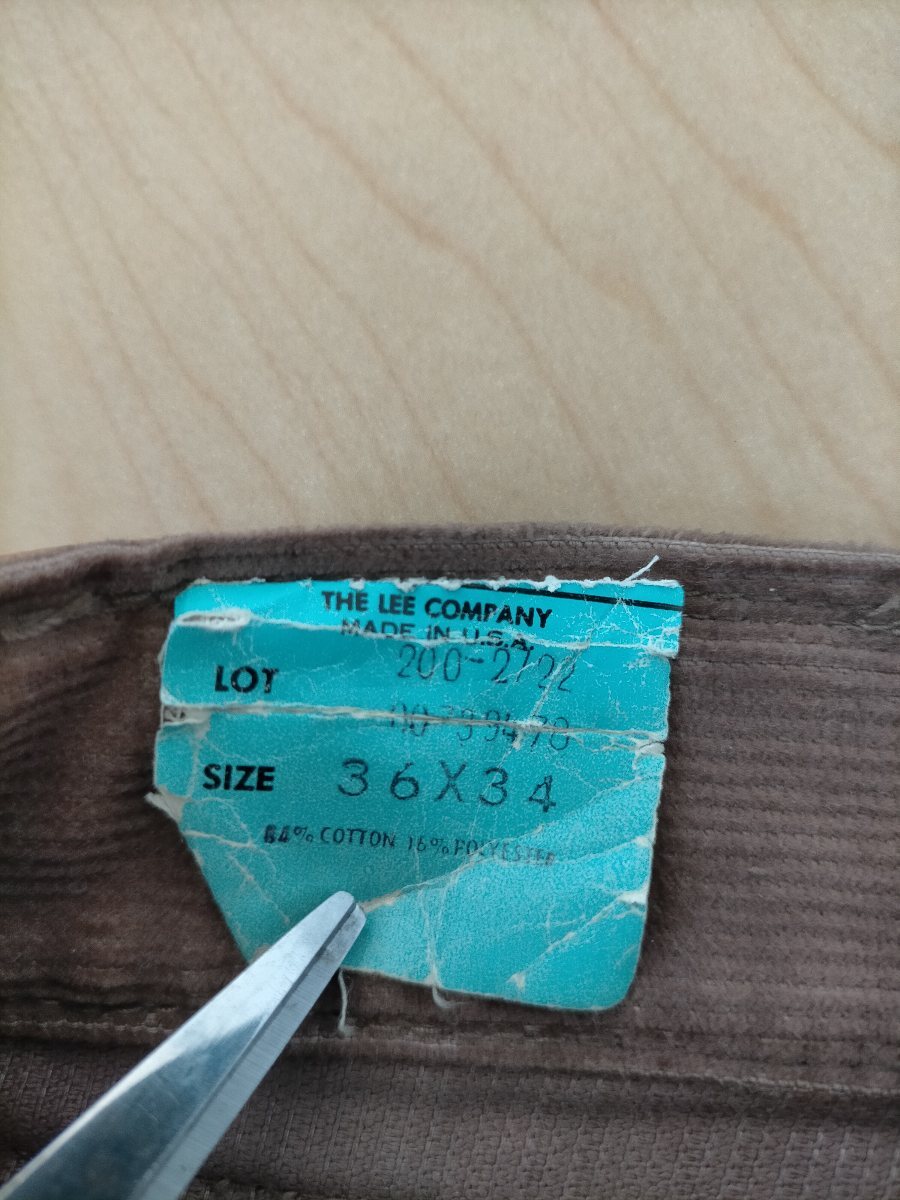デッドストック 80s USA製 Lee 200-2722 42TALON ユニオンチケット付き コーデュロイパンツです。