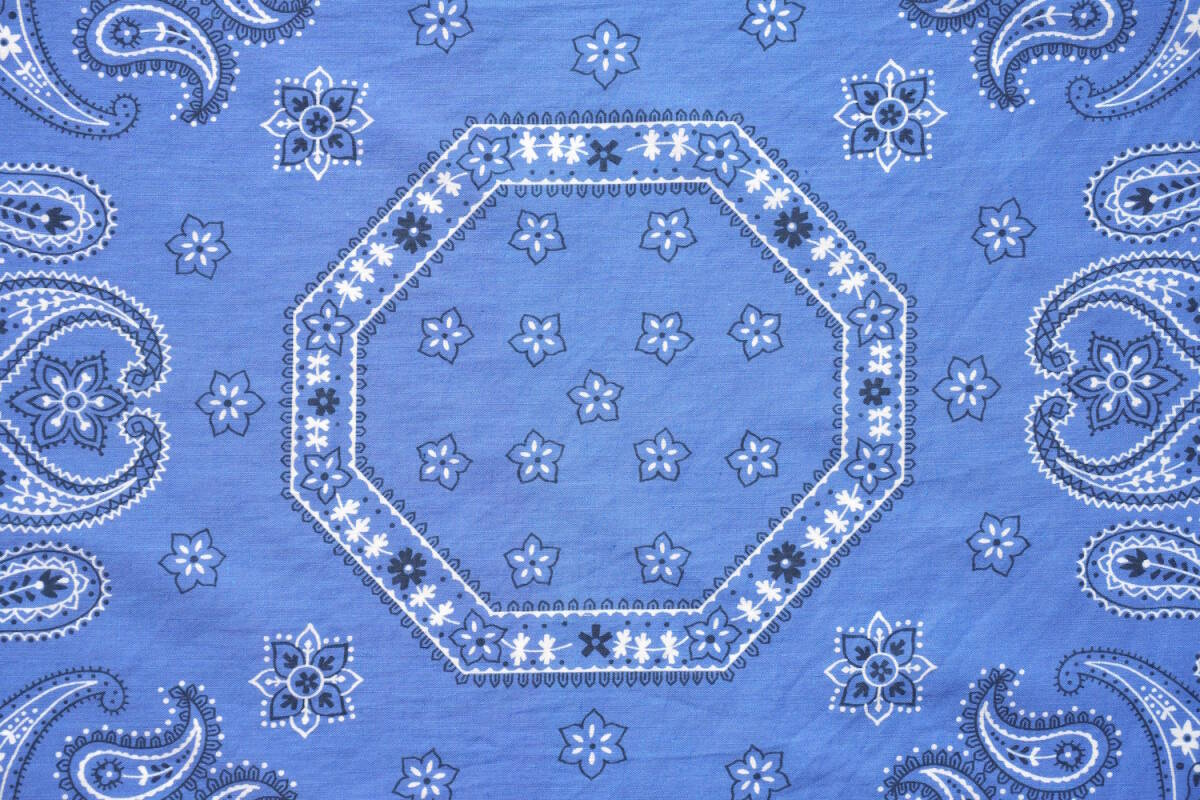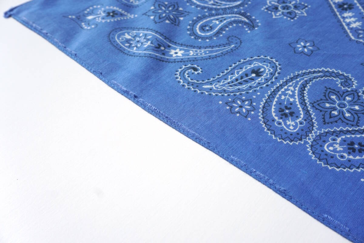 1980s ヴィンテージ USA製 I.SHALOM&CO. オクタゴン ペイズリー&フローラル柄 バンダナ 青紫 セルビッヂ 耳付き RN13962 アメリカ 古着