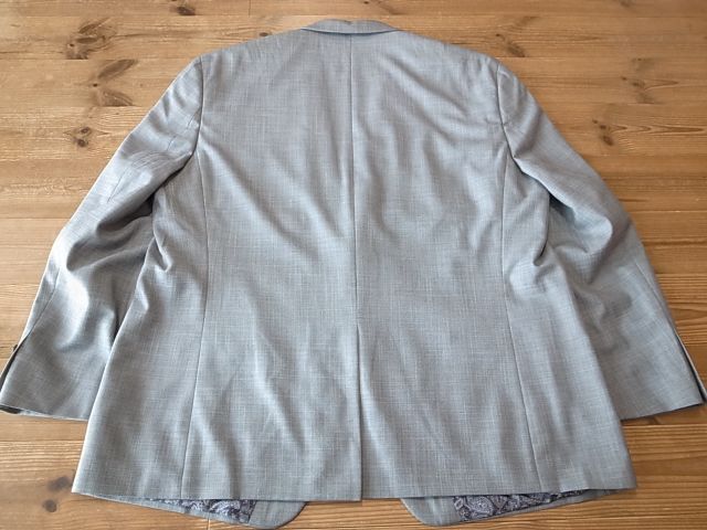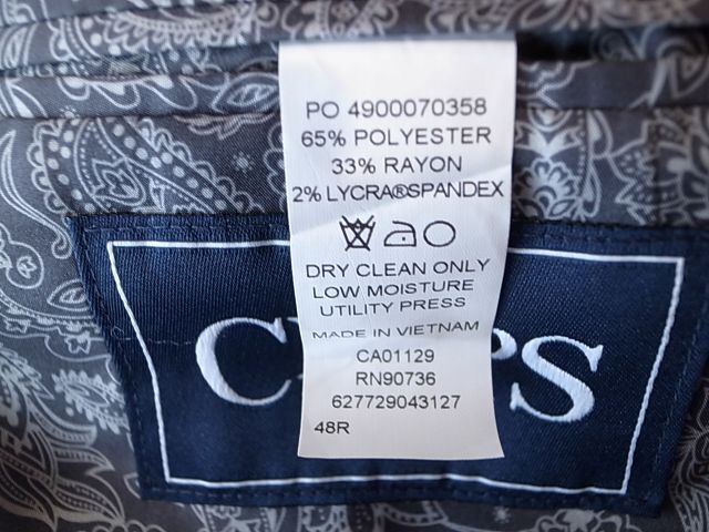 ◆ブランド 「CHAPS」ラルフローレン派生ブランド アメリカ古着 ●サイズ表記 48R 実寸サイズ 5XL(6L)相当 肩幅…53cm(肩先から肩先の間の長さ) 身幅…65cm(両脇を横直線に結んだ長さ) 着丈…79cm(後衿ぐり中央から後身頃裾) 袖丈…65cm(袖付けの肩先から袖先) ※平置き状態での素人採寸ですので、多少の誤差はご了承ください。 ●素材…65%POLYESTER 33%RAYON 2%LYCRA オールシーズン対応 ●色…グレー ●ポケット… フラップポケット ●裏地…総裏仕立て ●ベント…センターベント ●製造国表記…VIETNAM ●状態…使用感はほとんど感じられない極美品です。 ★送料 全国一律 700円 佐川急便 (北海道900円 沖縄その他離島1700円) ※複数ご購入の場合、同梱発送可能です。 |