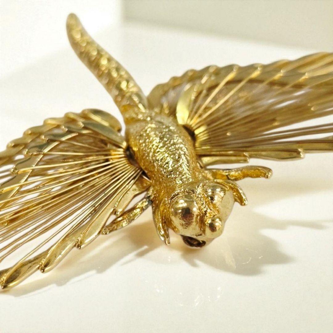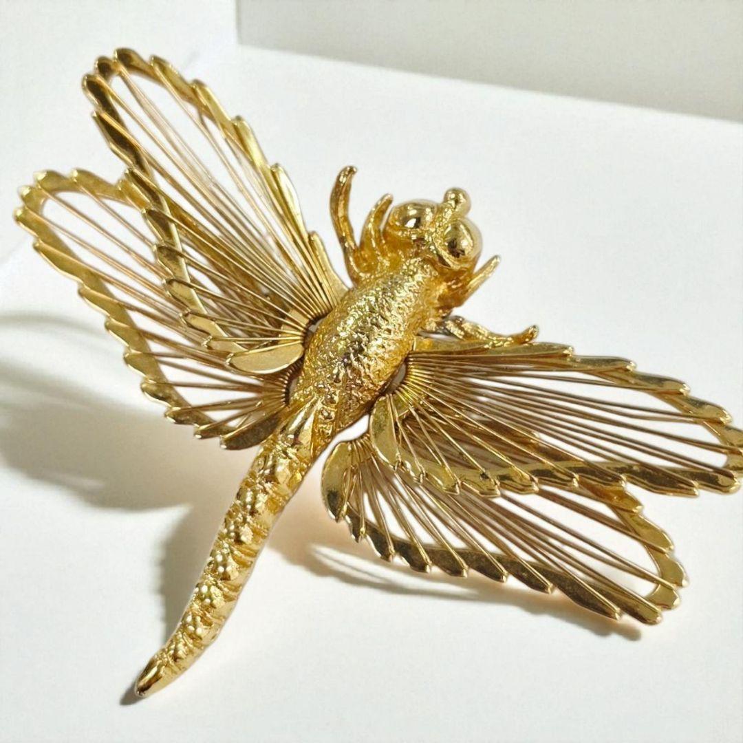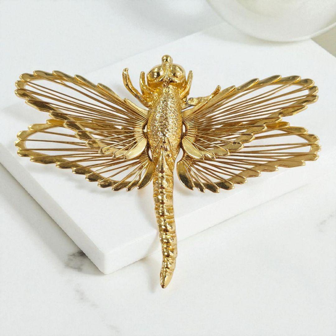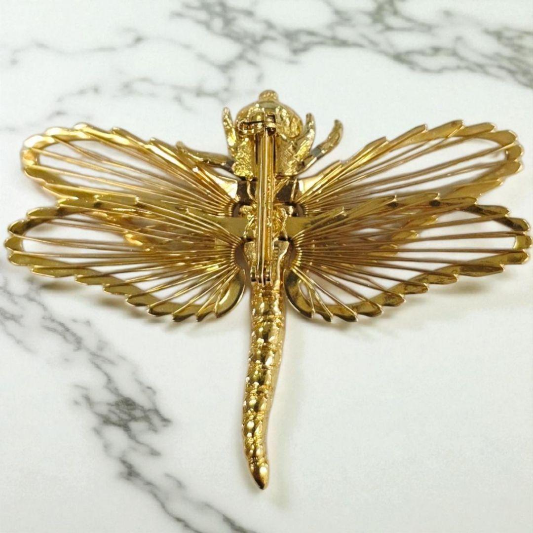 トンボをモチーフにしたデザインで、繊細な羽の透かし細工とゴールドの輝きが存在感抜群。