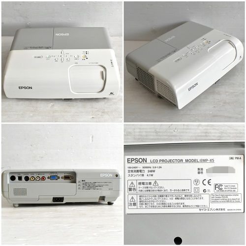 ◇仕 様 商品名 プロジェクター メーカー エプソン 型 番 EMP-X5 寸 法 約 幅330mm×奥行250mm×高さ100mm 重 量 約 4kg 電 源 単相100V 50/60Hz 消費電力 248W 付属品 キャリングバック、取扱説明書、ドキュメントCDROM、 VGAケーブル、リモコン、電源ケーブル ◇商品内容・状態 ・引取り前まで、使用していた商品になります。 ・動作出来る環境が無い為、通電、ランプ点灯のみ確認致しました。 ※現状渡しとなりますので、確認した内容以外で不具合があった場合、返品返金の対象外となります。 |