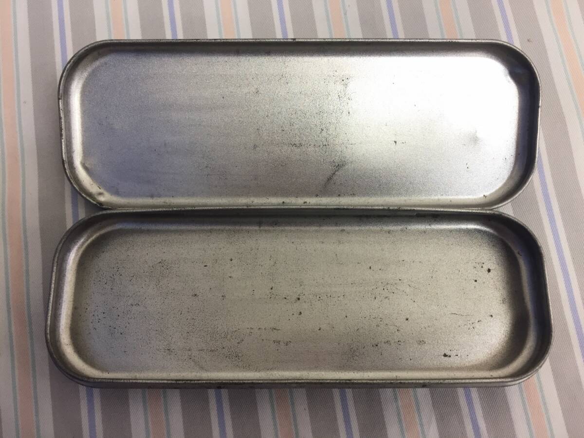 ◎サイズ 縦幅:約 7cm 横幅:約 19cm 重量:約 86g ※多少誤差は生じると思います。 -------------- ◎状態 中古。長期保管品。 致命的な破損は特に無いと 思いますが、 全体的に剥げ、傷、凹み、 錆びのような変色など 多数ダメージがあります。 --------------