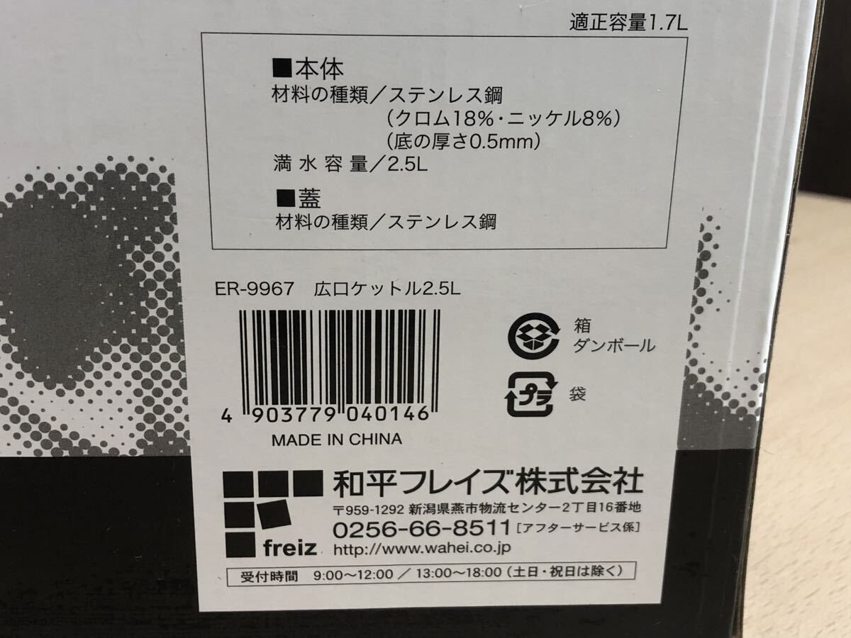 【未使用保管品S7008】和平フレイズ 広口ケットル ステンレス ケトル 2.5L IH対応 やかん