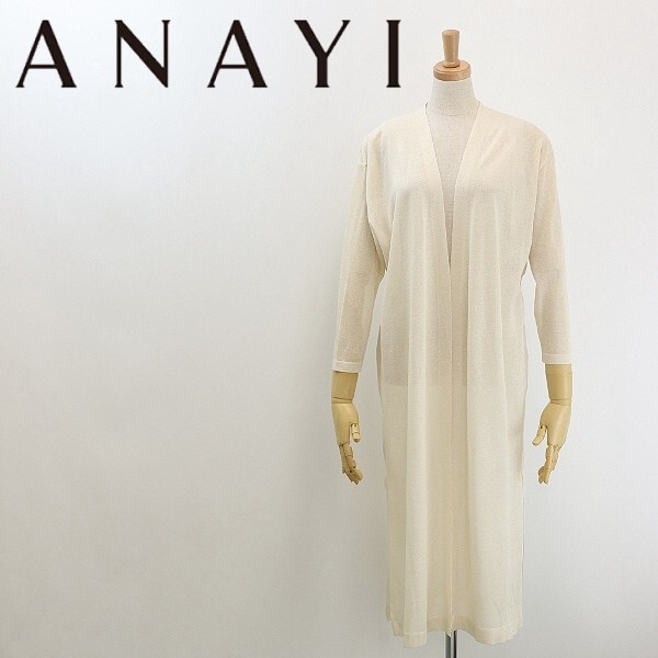 【HA352】美品◆ANAYI アナイ レーヨンニット バックギャザー サイドスリット ボタンレス ロング カーディガン アイボリー 36 | |