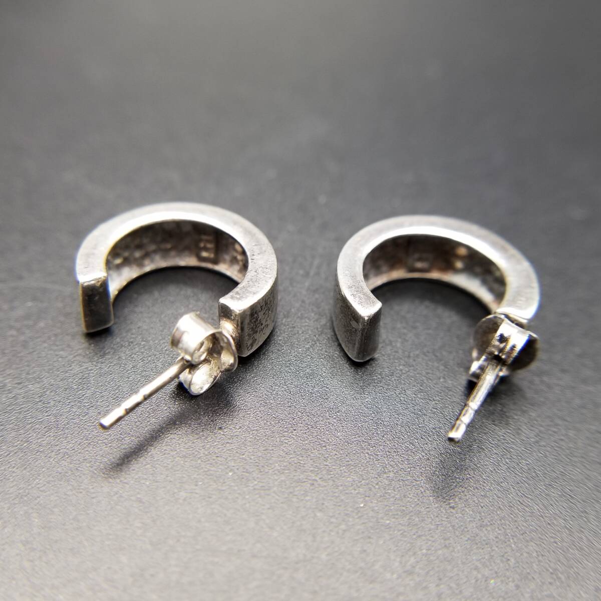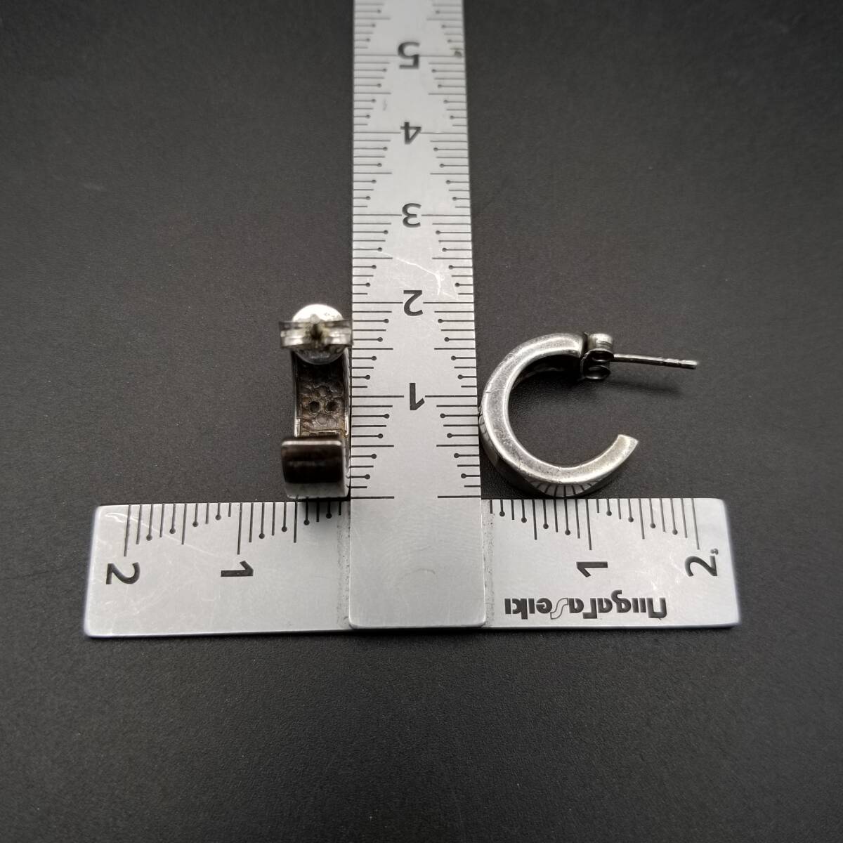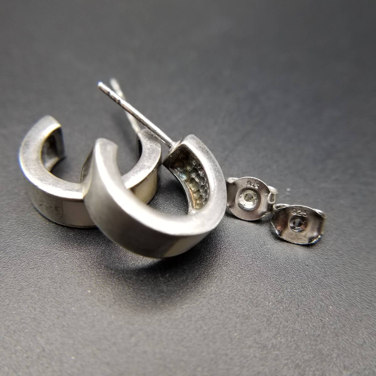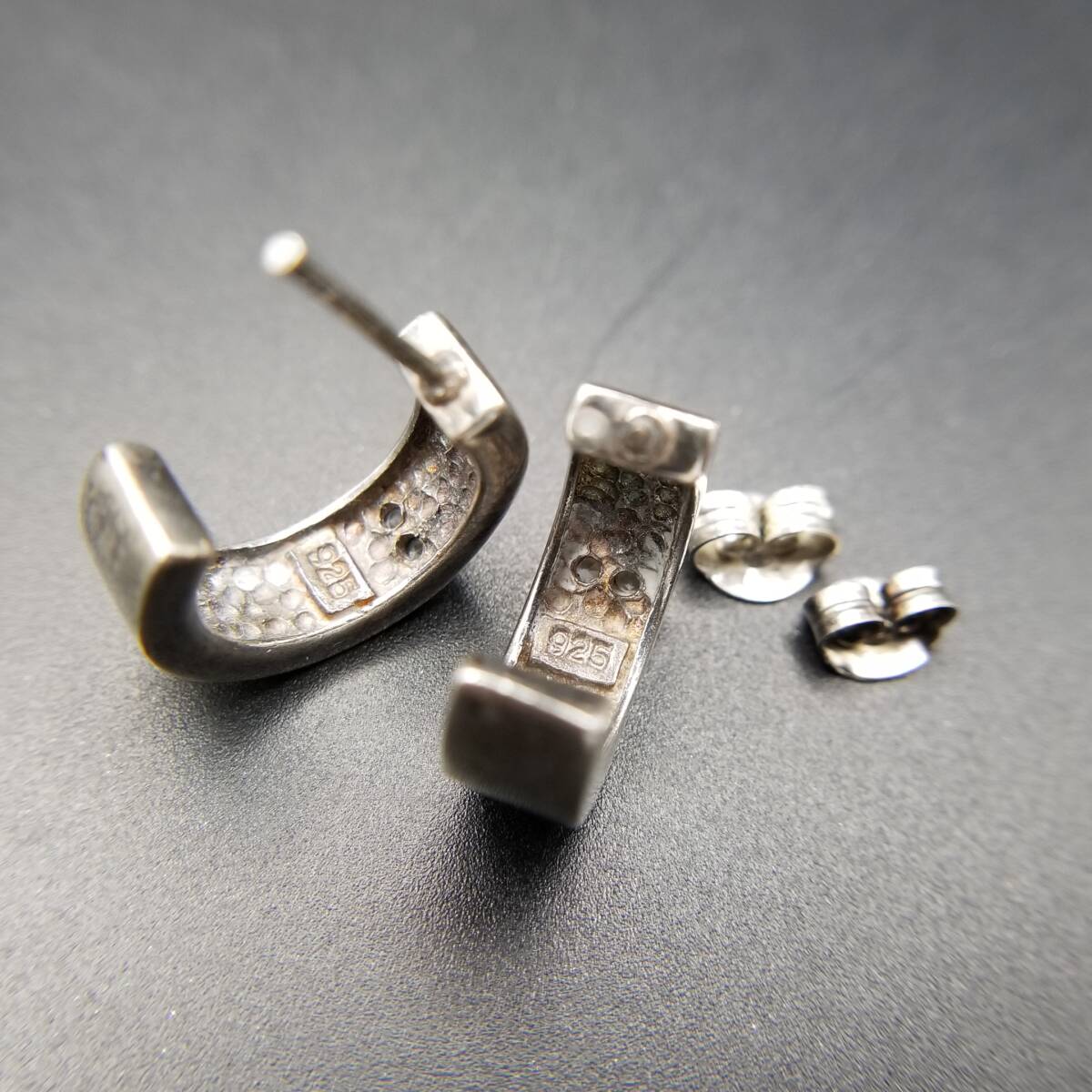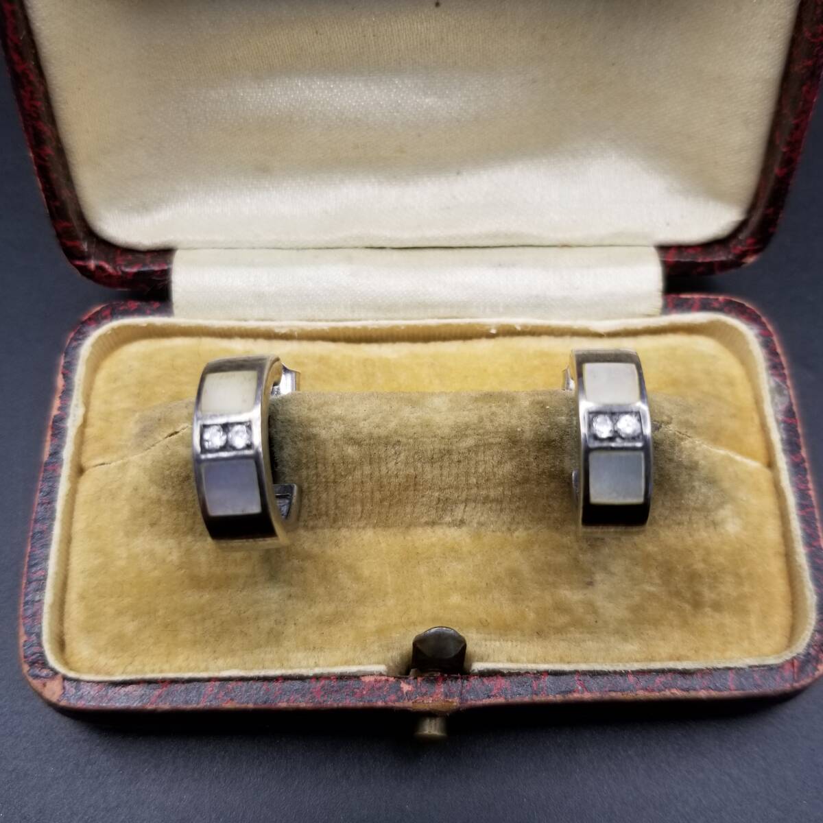 マザーオブパール ラインストーン インレイ 925 シルバー ヴィンテージ フープ ピアス 銀幅広 小ぶり 上品なサイズ感 Y24-N