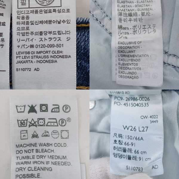 表記サイズ:26 ウエスト (約cm):68 太腿幅 (約cm):28 股上 (約cm):29 股下 (約cm):64 裾幅 (約cm):13.4 ![]() |