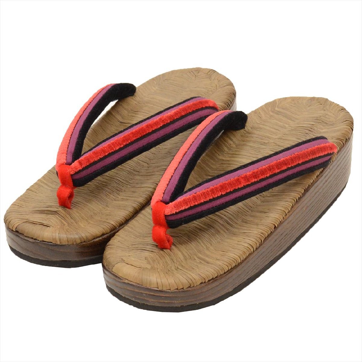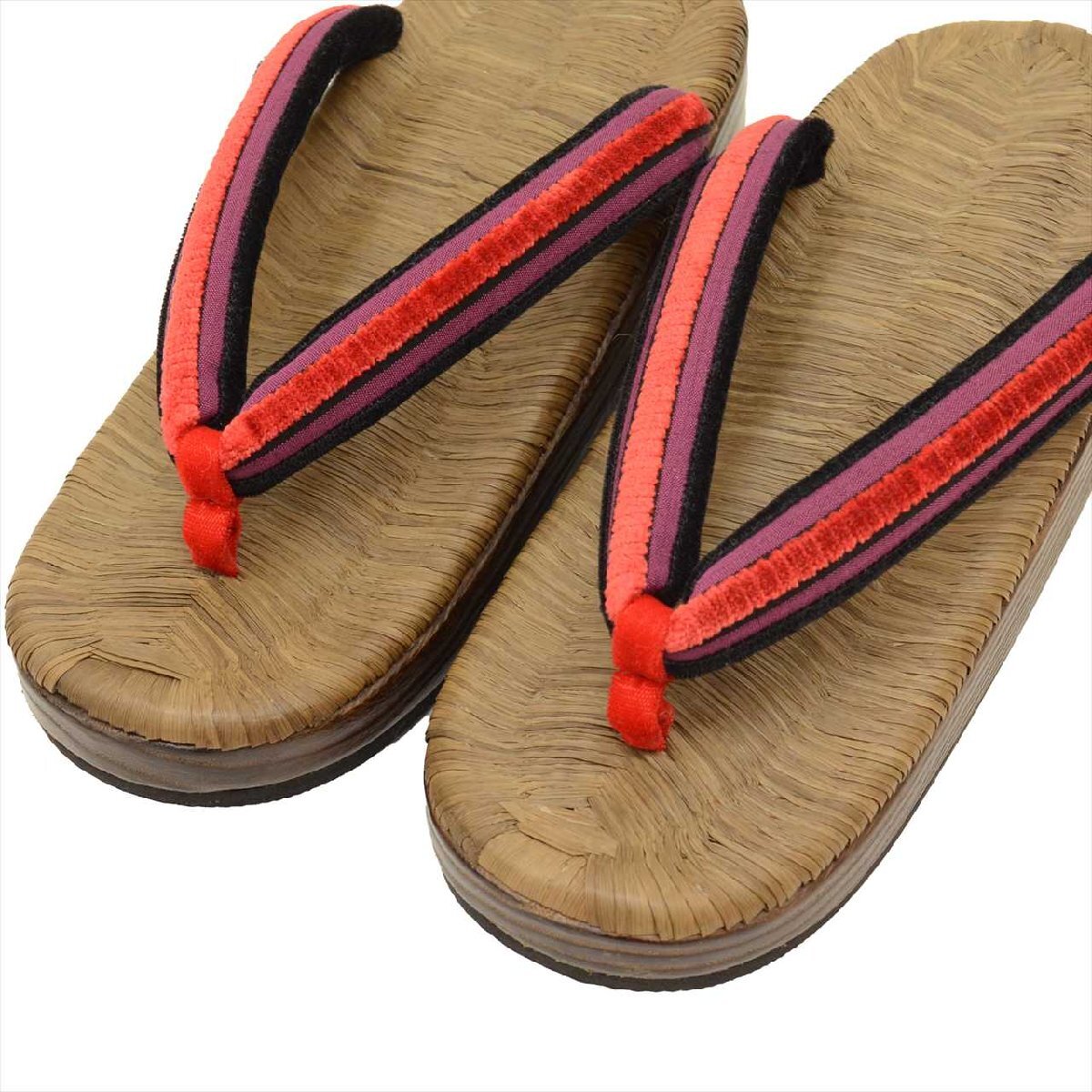 赤や紫色の女性用のリサイクル草履です。