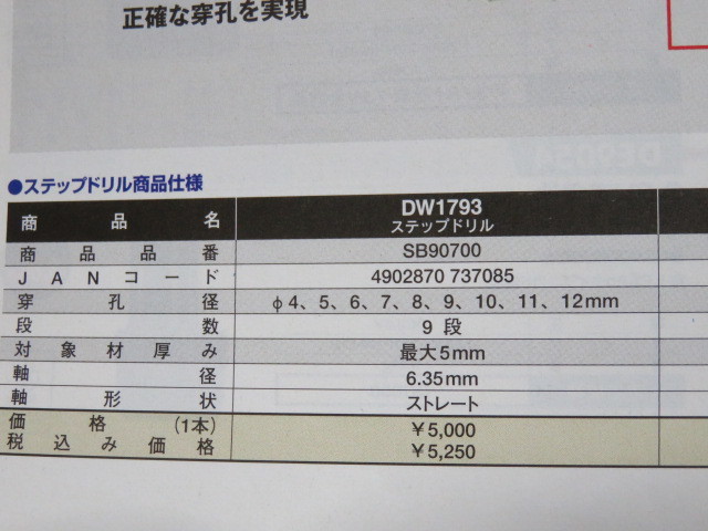 デウォルト ステップドリル 4~12mm  DW1793 未使用品