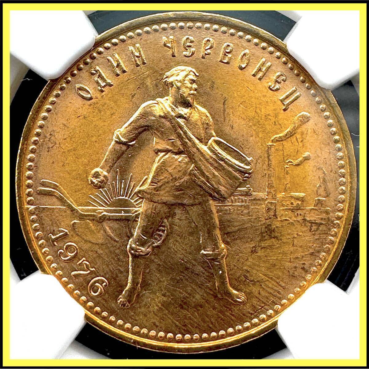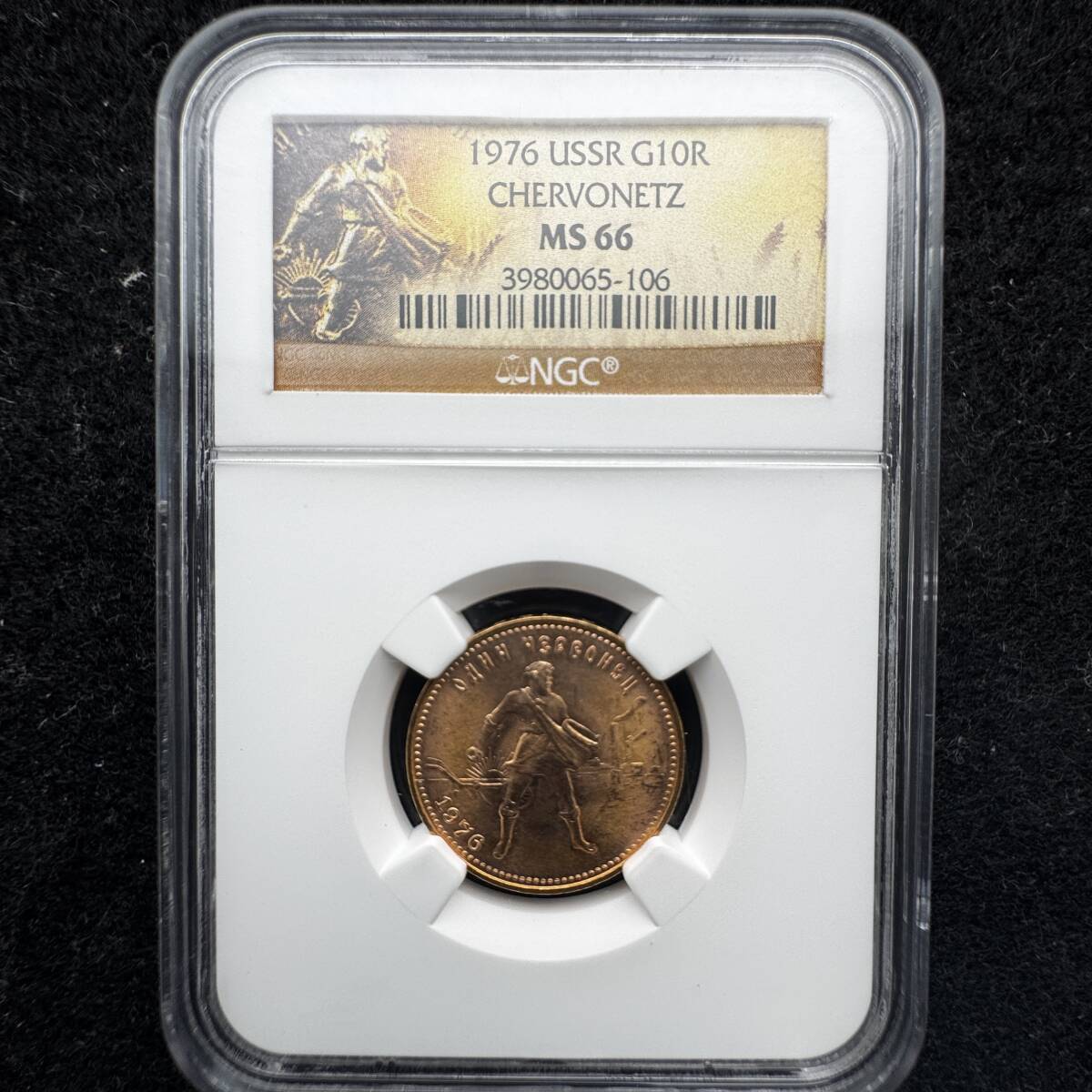 『美麗革命レリーフ 大地に刻まれた物語 美と価値を兼ね備えた名品』1976年 ソ連 チェルボネッツ 10ルーブル 金貨 NGC MS66 高鑑定