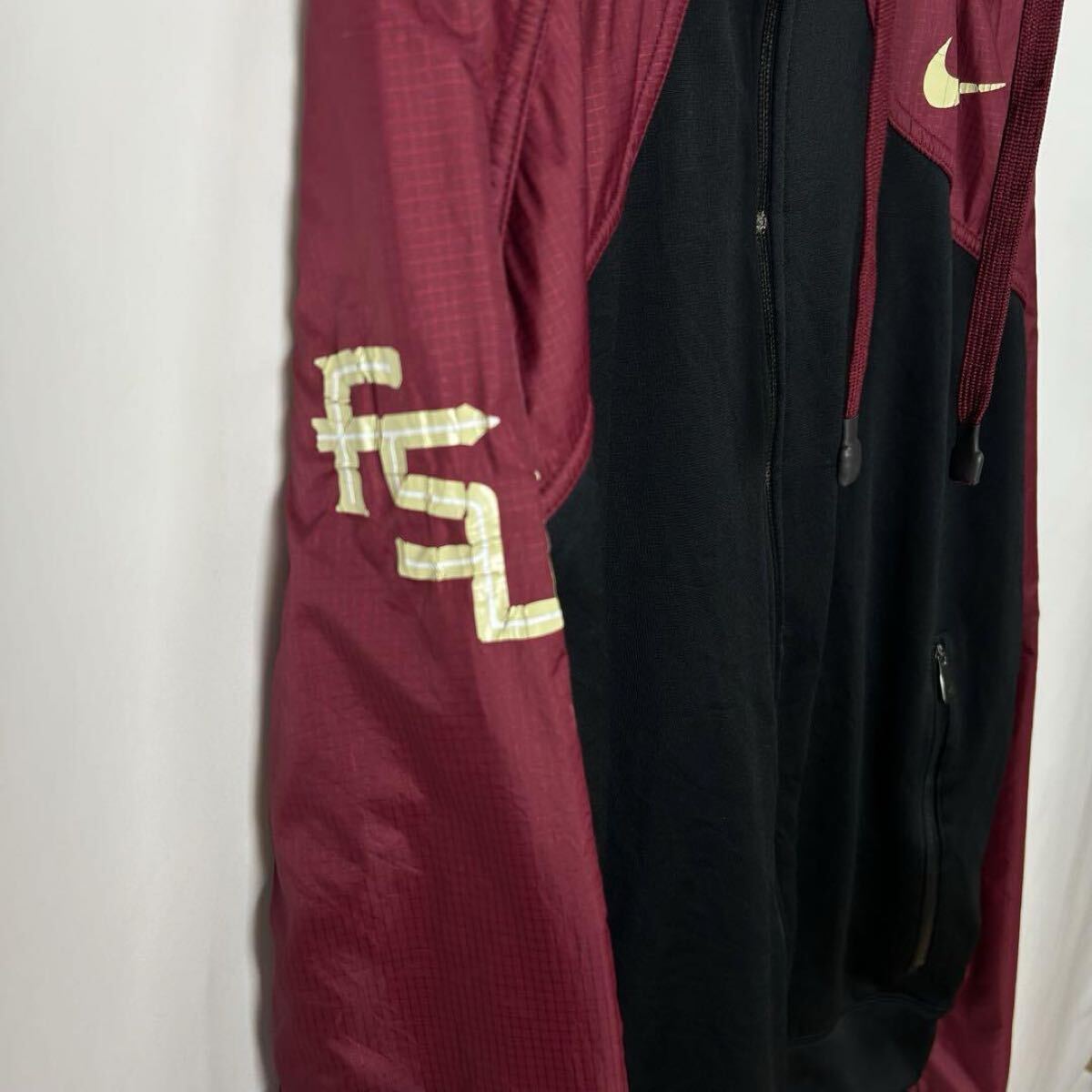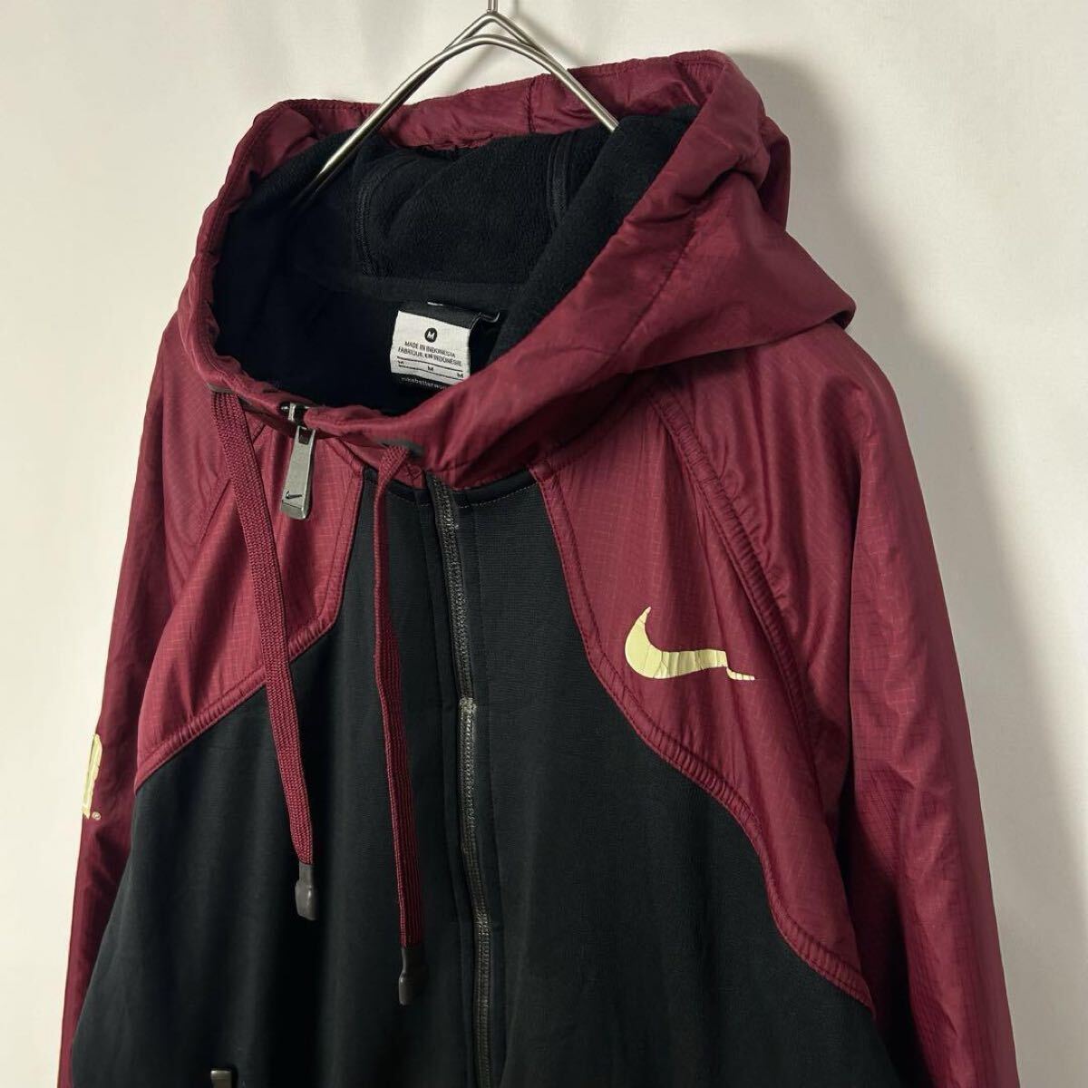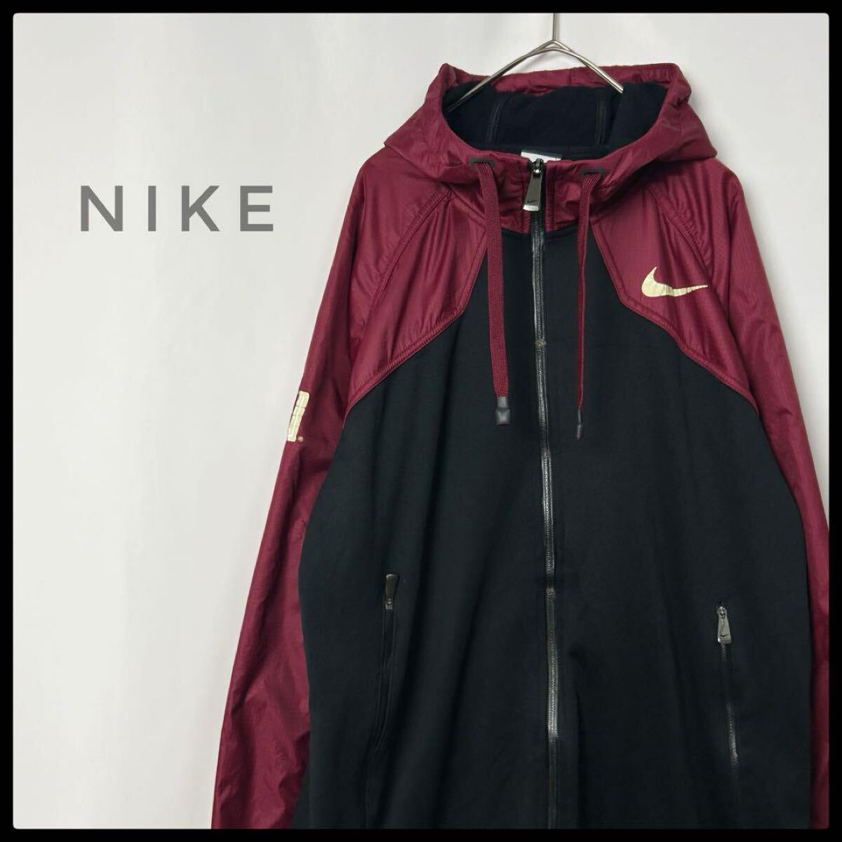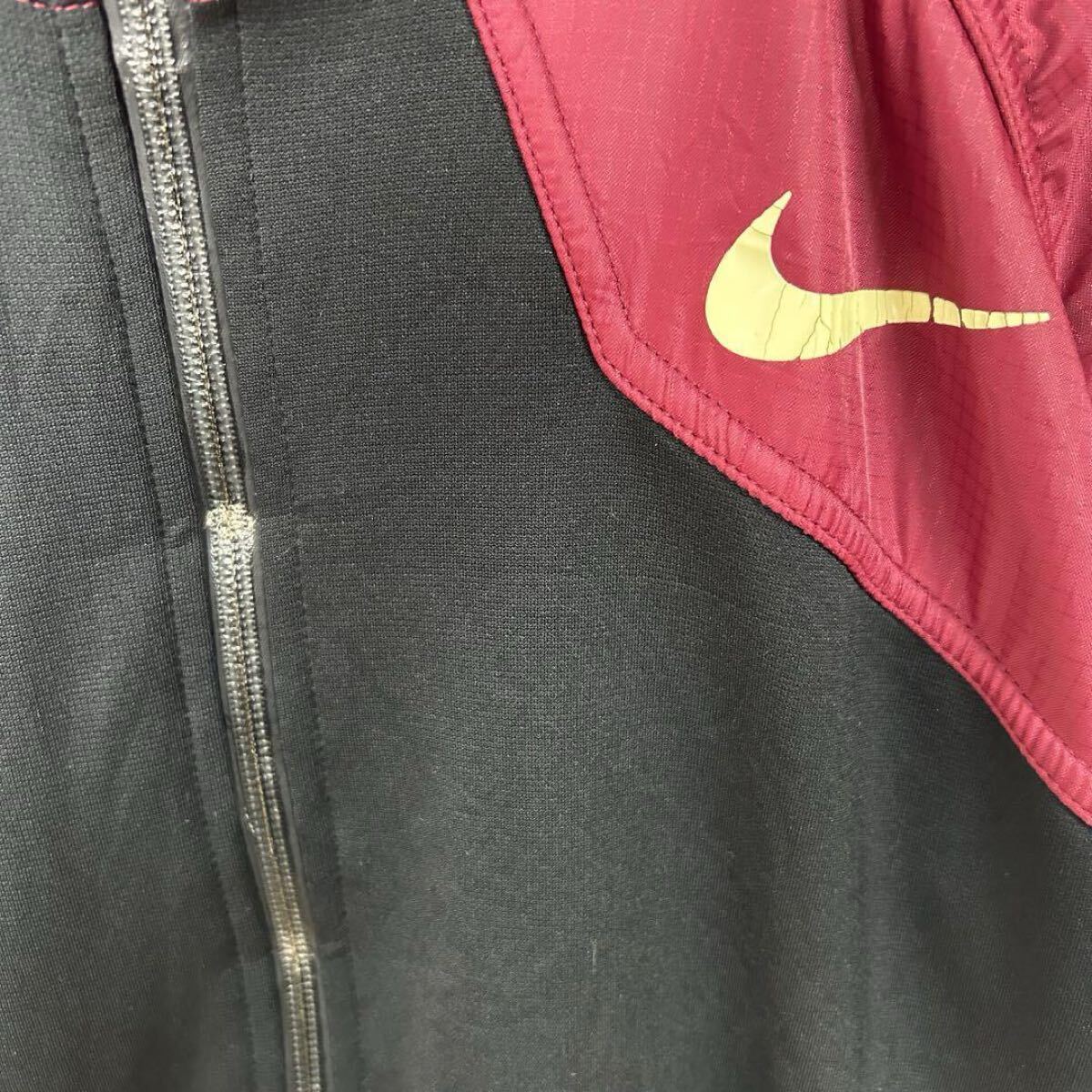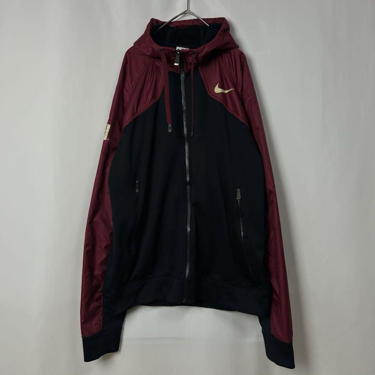 NIKE ナイキ 切替 ジャージトラックジャケット フードジップパーカー ブラック×バーガンディー