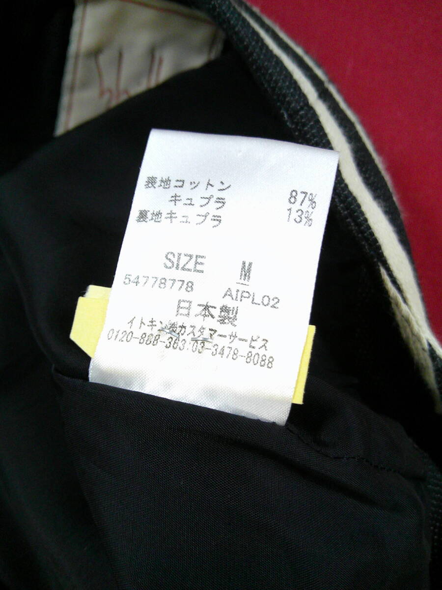 ☆~商品説明~☆ 【サイズ】 サイズ M ウエスト67-68㎝ 股上24,5㎝ ヒップ90㎝ 着丈 73㎝ クリーニング済み 画像 9 美品ですが、点の汚れがあります。気になるほどではありません。 ポケット付きです。 ※その他のサイズは省略致します。 また、サイズ等のご質問を頂きましても梱包済みの為、お答えすることが出来ません。 【品質】 コットン 87% キュプラ 13% 【カラー】 ブラック その他 画像にてお願いします。 ※その他にも出品しています。急に取り消す場合がありますのでご了承下さい。 ※袋にきつめに入っています。ホコリの付着、シワになっている場合もございます。ご理解頂けると幸いです。 ☆~配達方法~☆ 【レターパック】(レターパックで選択お願いします。)(保障はございません。追跡番号あり。) ※水曜・木曜日の発送および連絡はお休みです。 ・発送方法の変更・レターパックの同梱包はできませんのでご了承ください。 ・落札者様の方での、ゆうパケット・レターパックの指定は出来ません。 ・レターパックの曜日指定は出来ません。 ・3点目からヤマト便になります。 ※定形外普通郵便の発送は致しておりません。 ・即決・切手はお取り扱いしていません。 ※ゆうパケットが、厳しくなり少しでも厚みがあると返却されます。 その時はこちらの発送(定形外)になりますが、ご了承下さい。同梱は致しません。 ※万が一過不足がありましても返金・追加徴収は致しません。 ☆~支払方法~☆ 【Yahoo!かんたん決済】 ※お支払いは3日以内お願いいたします。(土曜・日曜日を含む) 金曜・土曜・日曜日にかけての3日間で落札がありましたら、2点以上落札されたお客様は落札時の連絡に、まとめ連絡で選択して下さい。 同梱希望分は一部を入金せず、全てまとめて1回でご入金下さい。 お取り置きは金曜・土曜・日曜日です。落札分のみは致します。(一週間のお取り置きは致しません) ☆~★~☆~お願い~☆~★~☆ 【新規IDの方へ】 新規IDのいたずら入札が多くなり、取引の妨害に遭うことが度々あります。 入札希望の方は、お手数をお掛け致しますが、質問欄にてコメント願います。 コメントがなく入札された場合は、こちらからお取引を削除する場合がございますので、予めご了承願います。 また、ご新規様は、24時間以内にご連絡・ご入金がない場合、お取り消しさせていただきます。あらかじめご了承ください。 ◎恐れ入りますが、複数落札された方は必ず{まとめ連絡}でお知らせ下さい。 ○落札をされる場合は、写真をよくご覧の上でお願いします。 素人判断の検品です、よく見ているつもりですが、神経質な方はご遠慮下さい。 ◎個人のため、領収証等は発行しておりません。