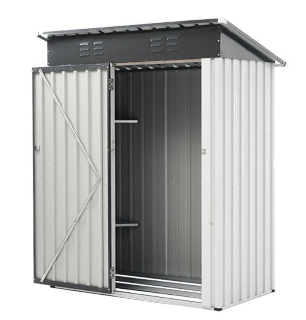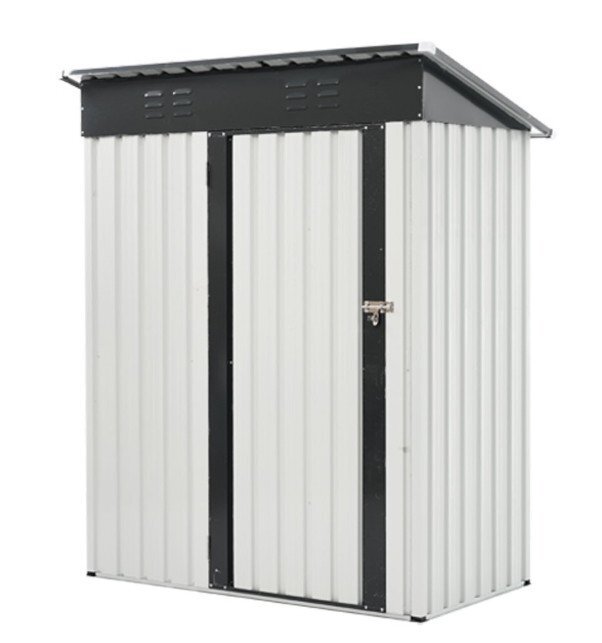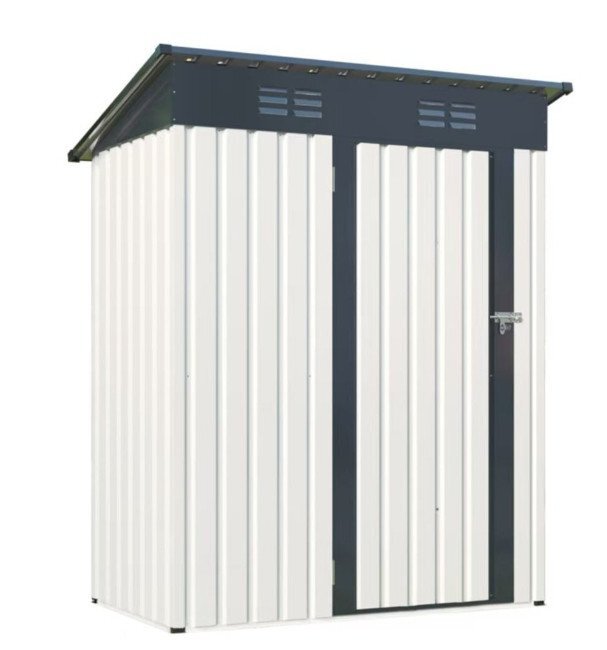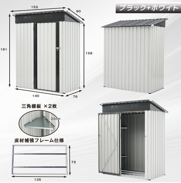迅速配送・【ブラック+ホワイト 三角棚あり 補強フレーム付き】物置 屋外 大型 倉庫 大型物置 戸外収納庫 物置 防水/耐侯/鍵付き 収納可能