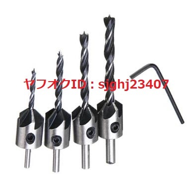 ▼皿取錐ドリル刃 刃径3~6mm 4本セット 座ぐりドリルビット 面取りカッター バリ取り 皿錐 消耗品 鉄工ドリルキリ