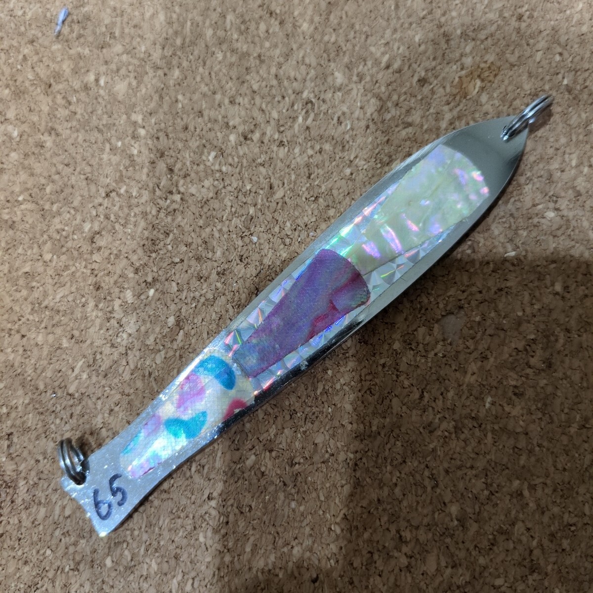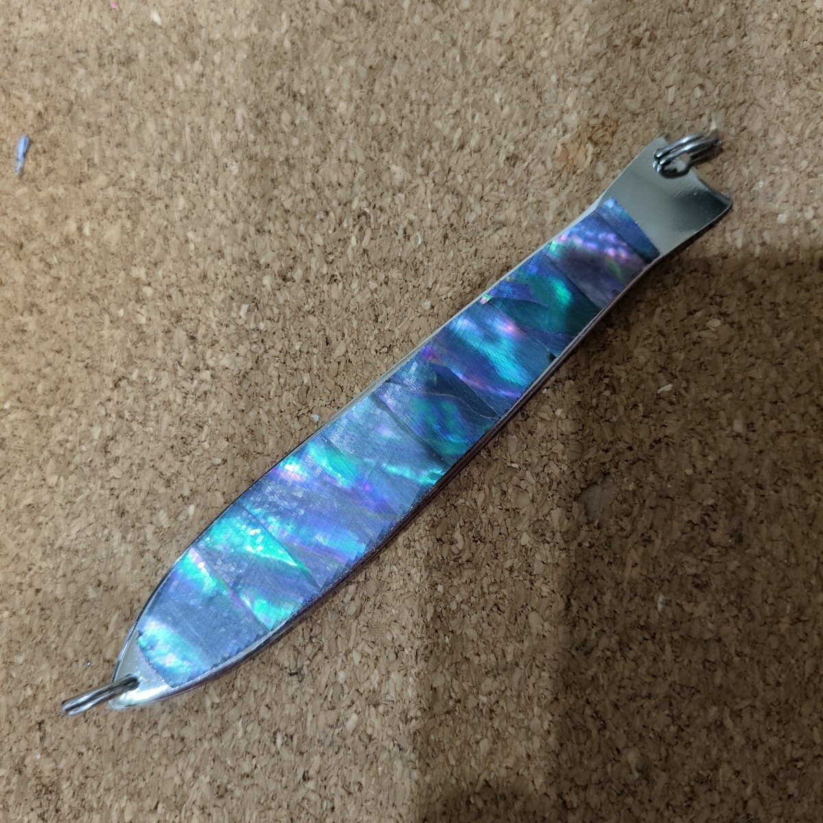 C-11347 オリジナル商品?スプーン? あわびシート貼り 実測63g   メタルジグ 青物 ジギング オフショアに その他同梱可!
