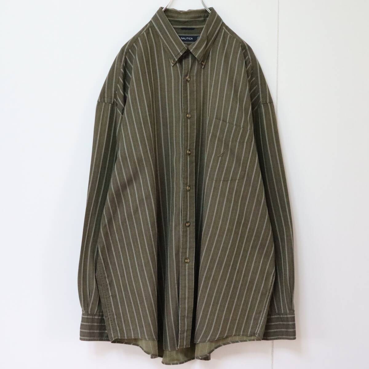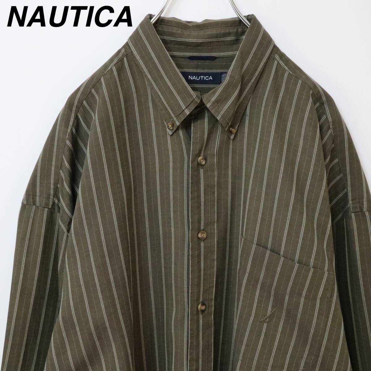 【2XLサイズ】ノーティカ BDシャツ ストライプシャツ 刺繍ロゴ グランパコア