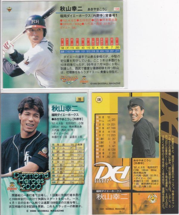 ●1999~01BBM/DH 【秋山 幸ニ】 BASEBALL CARD 3種:ホークス