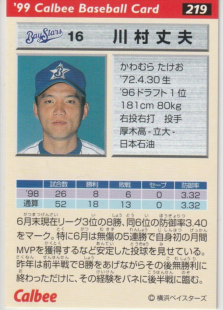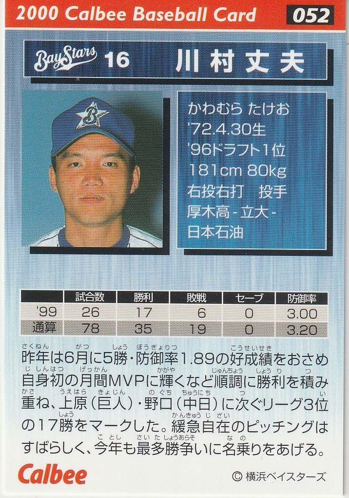 ●1999,00カルビー 【川村 丈夫】プレ版:金箔押サインパラレル No.219,052:横浜