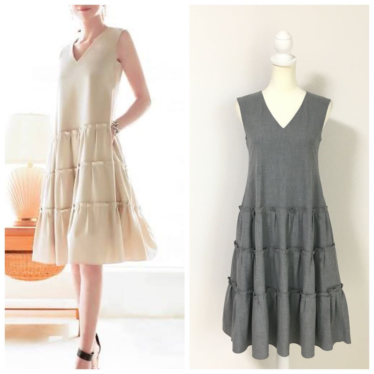 裾に向かって広がるAラインがとてもフェミニンなワンピース。リラックス感のある着心地ながら、エレガントな印象を与えてくれます。バックファスナー、裏地あり。