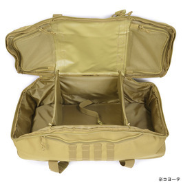 バッグの外側にはMOLLE対応のストラップが付いているので、ポーチなどを増設する事が可能。バッグ内部にはクッションパッドが入っているので収納物をしっかりと保護してくれます。