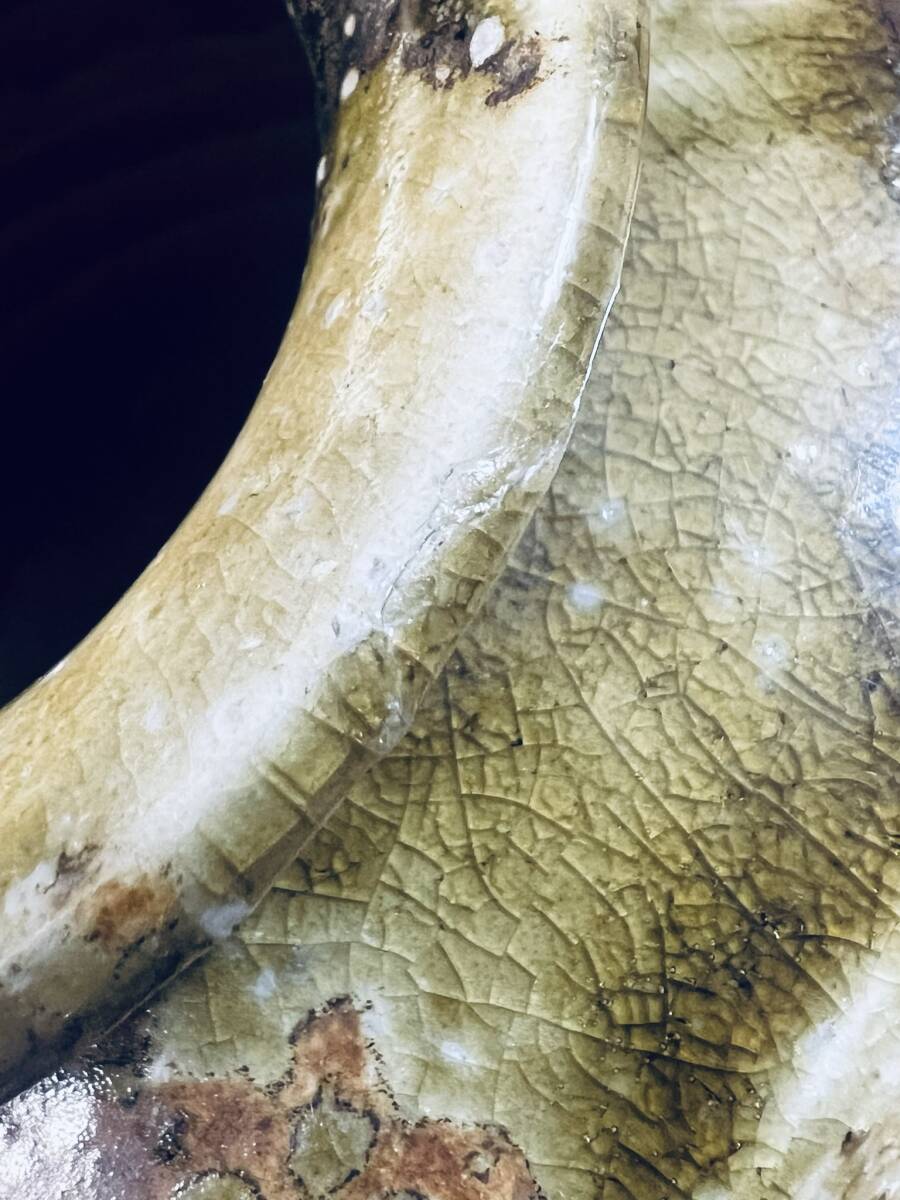 自然釉と火色のバランスがよく、素焼きの素朴で温かみのある質感が溢れる逸品です。