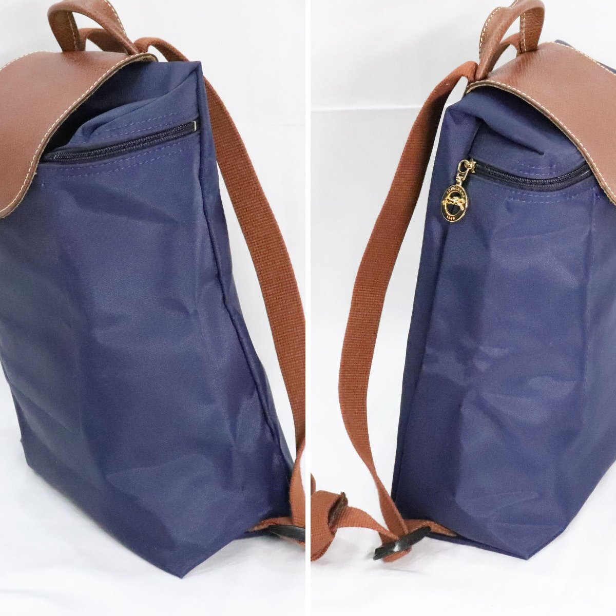 【品名】1円~ LONGCHAMP ロンシャン 2点! ル プリアージュ トートバッグ M ミルティーユ/バックパック ネイビー 折りたたみ 中古 送料無料!!